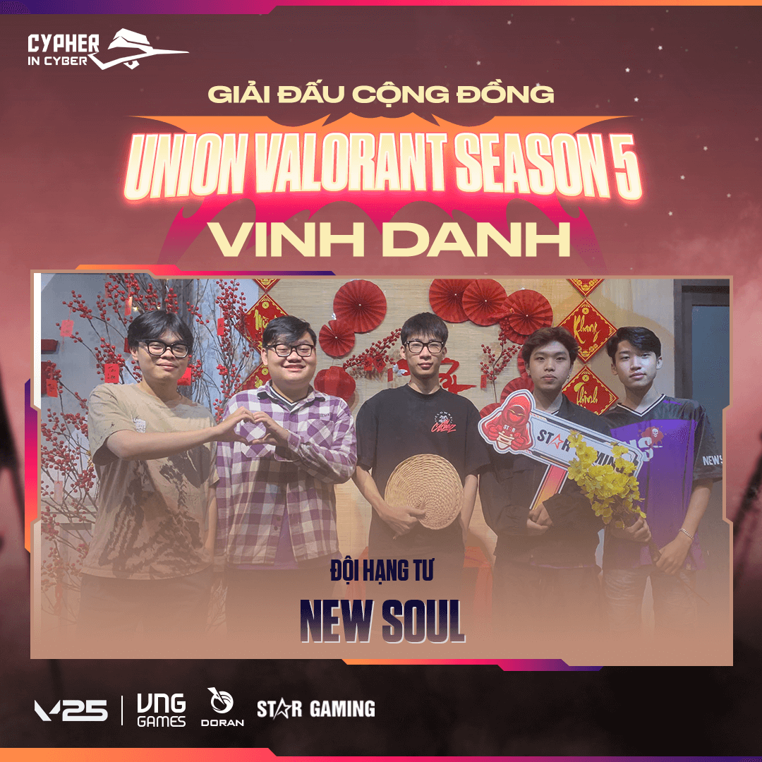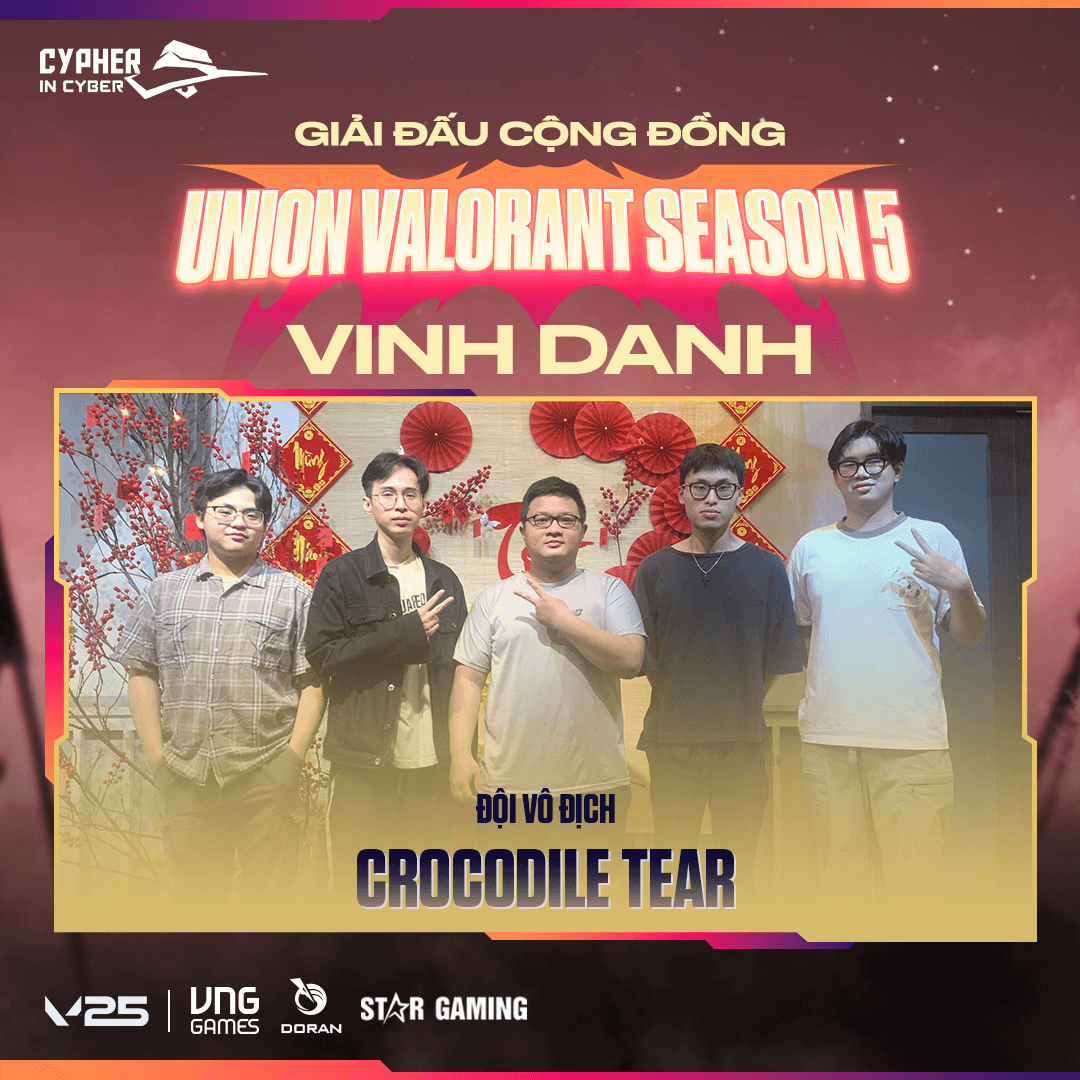 Xin chúc mừng tất cả các đội tuyển đã tham gia và cống hiến cho một mùa giải UNION VALORANT SEASON 5 đầy thành công. Sự đam mê, tinh thần thể thao và quyết tâm của các bạn là nguồn cảm hứng lớn cho cộng đồng VALORANT.