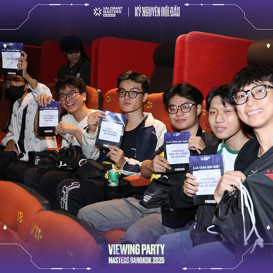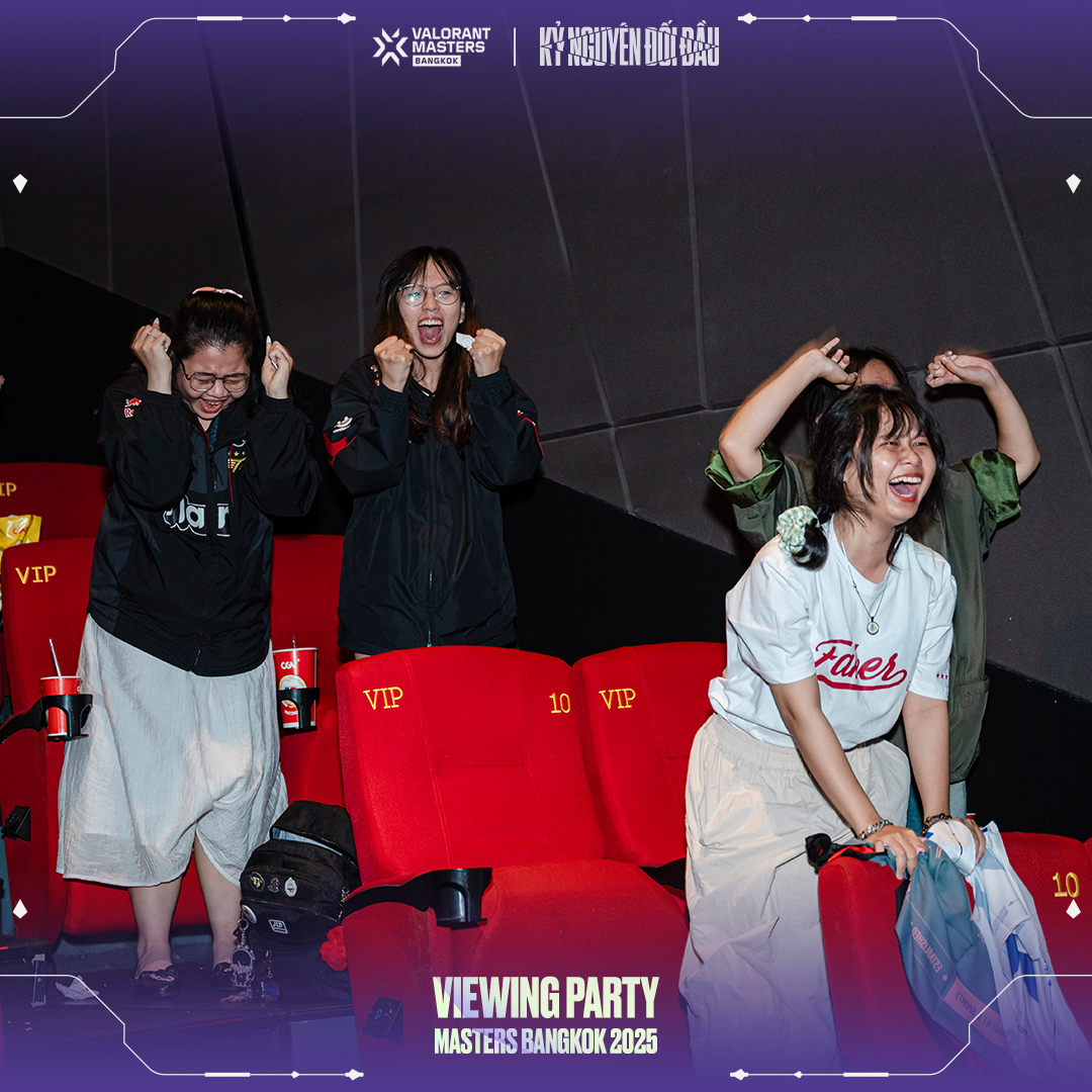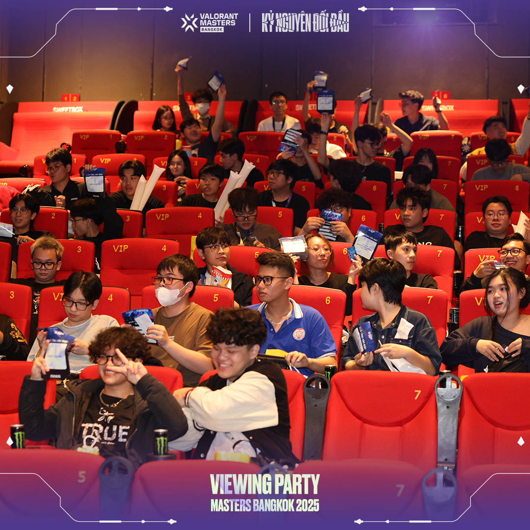 - Không khí tại Hà Nội thực sự bùng nổ khi vé Viewing Party "bay màu" chỉ sau 11 giờ mở bán! Rạp chiếu phim [Tên rạp] đã trở thành "chảo lửa" với hàng trăm fan VALORANT cùng nhau hô vang cổ vũ cho đội tuyển yêu thích.