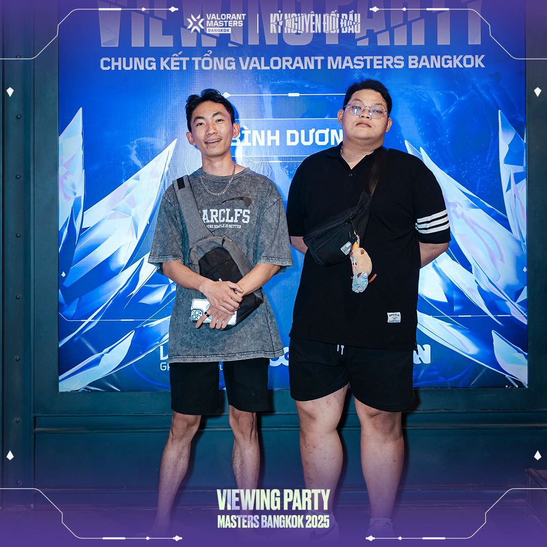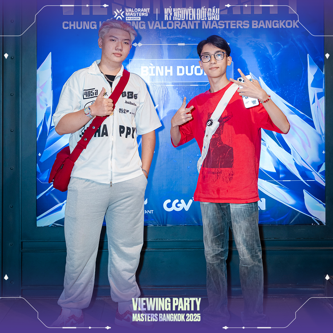 - Viewing Party tại Bình Dương đã khẳng định tiềm năng phát triển của cộng đồng VALORANT tại khu vực này. CGV Bình Dương Square vừa qua đã trở thành viewing party Master Bangkok giúp cộng đồng VALORANT tại Bình Dương giao lưu, kết bạn và cùng nhau tận hưởng đam mê.