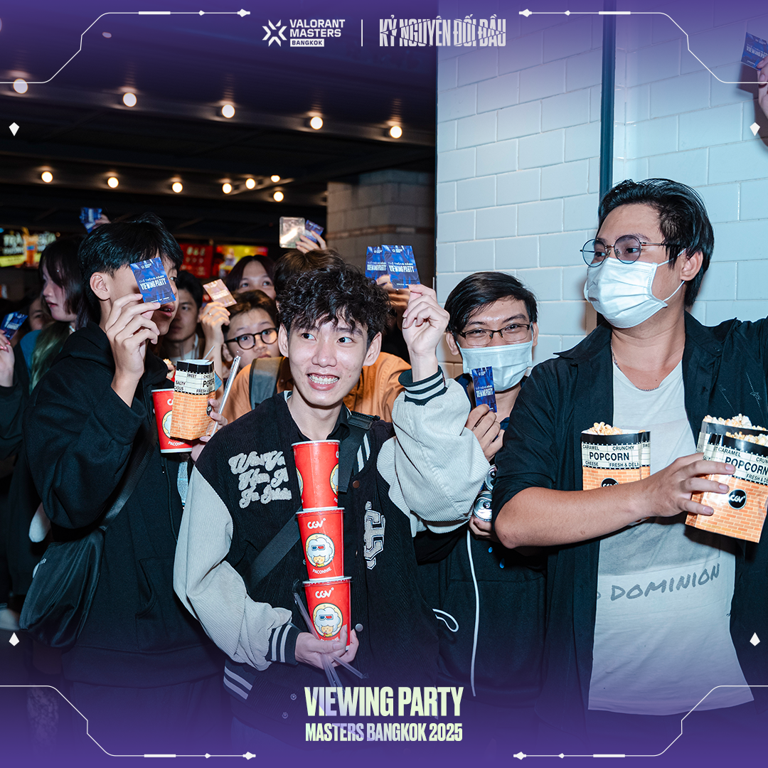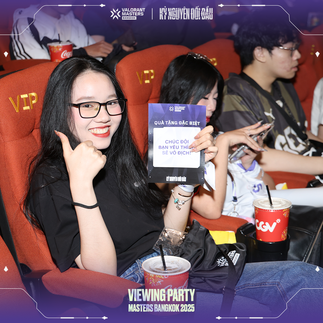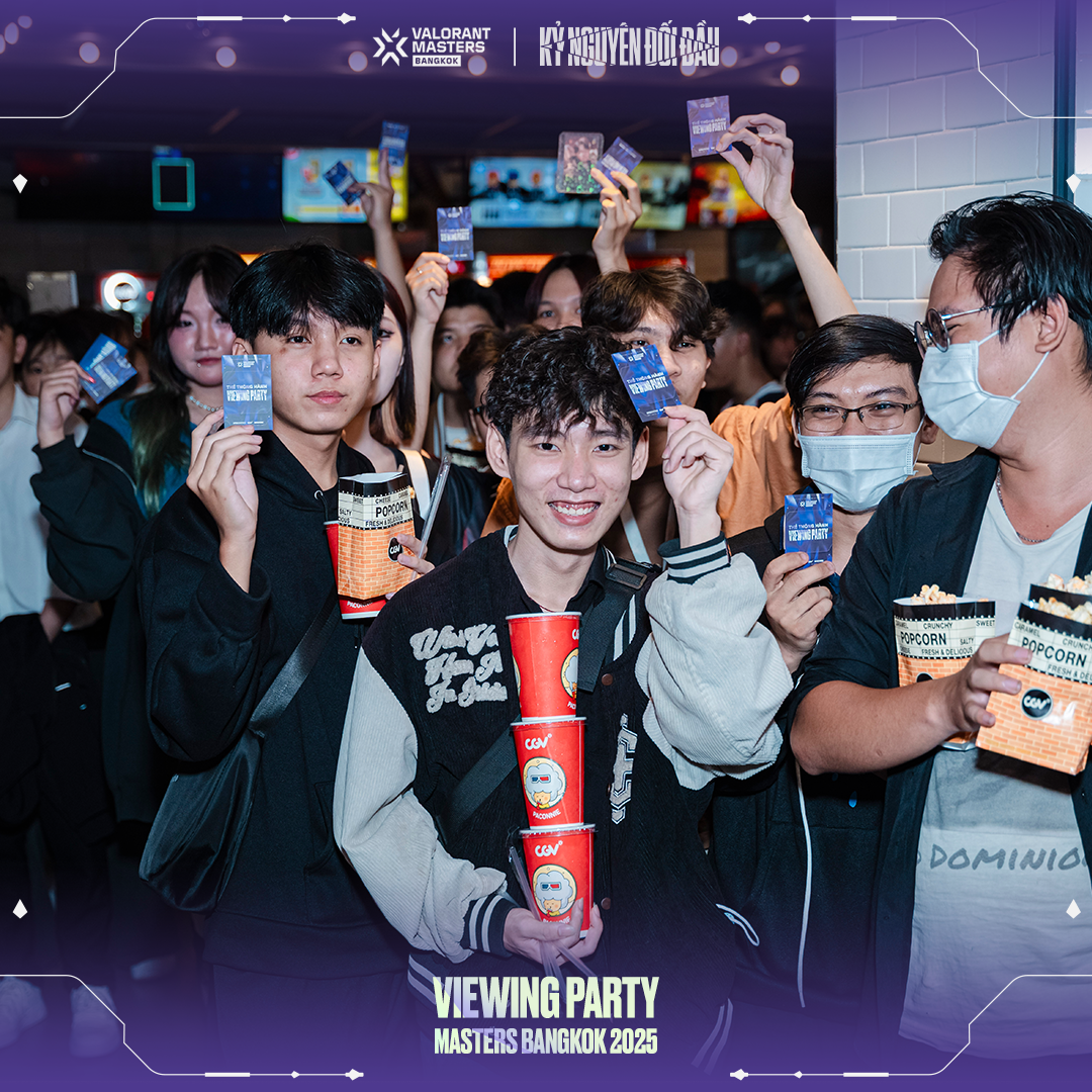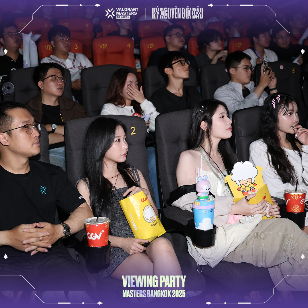Để hòa chung vào không khí cuồng nhiệt của Masters Bangkok, VNGGames đã tổ chức chuỗi sự kiện Viewing Party hoành tráng tại CGV Cinemas ở TP.HCM, Hà Nội, Đà Nẵng, Hải Phòng và Bình Dương. Với tên gọi "Kỷ Nguyên Đối Đầu", Viewing Party Masters Bangkok thể hiện sự đầu tư nghiêm túc và tâm huyết của VNGGames dành cho cộng đồng VALORANT. Hãy cùng điểm qua những khoảnh khắc đáng nhớ tại từng địa điểm & truy cập vào đây để xem thêm hình ảnh: