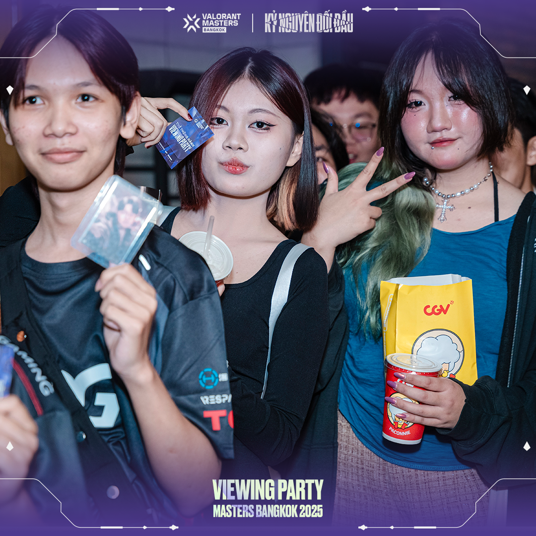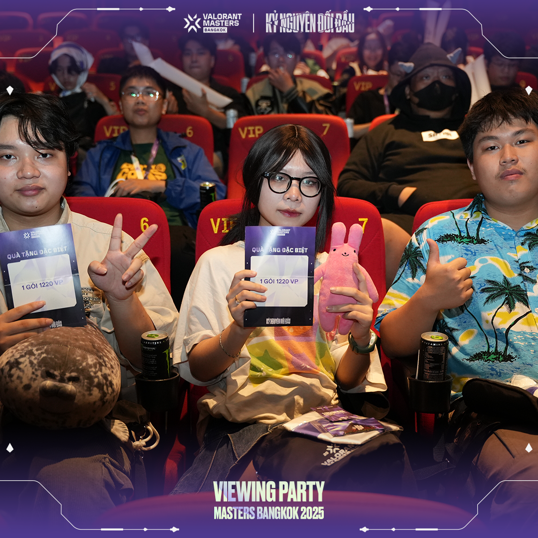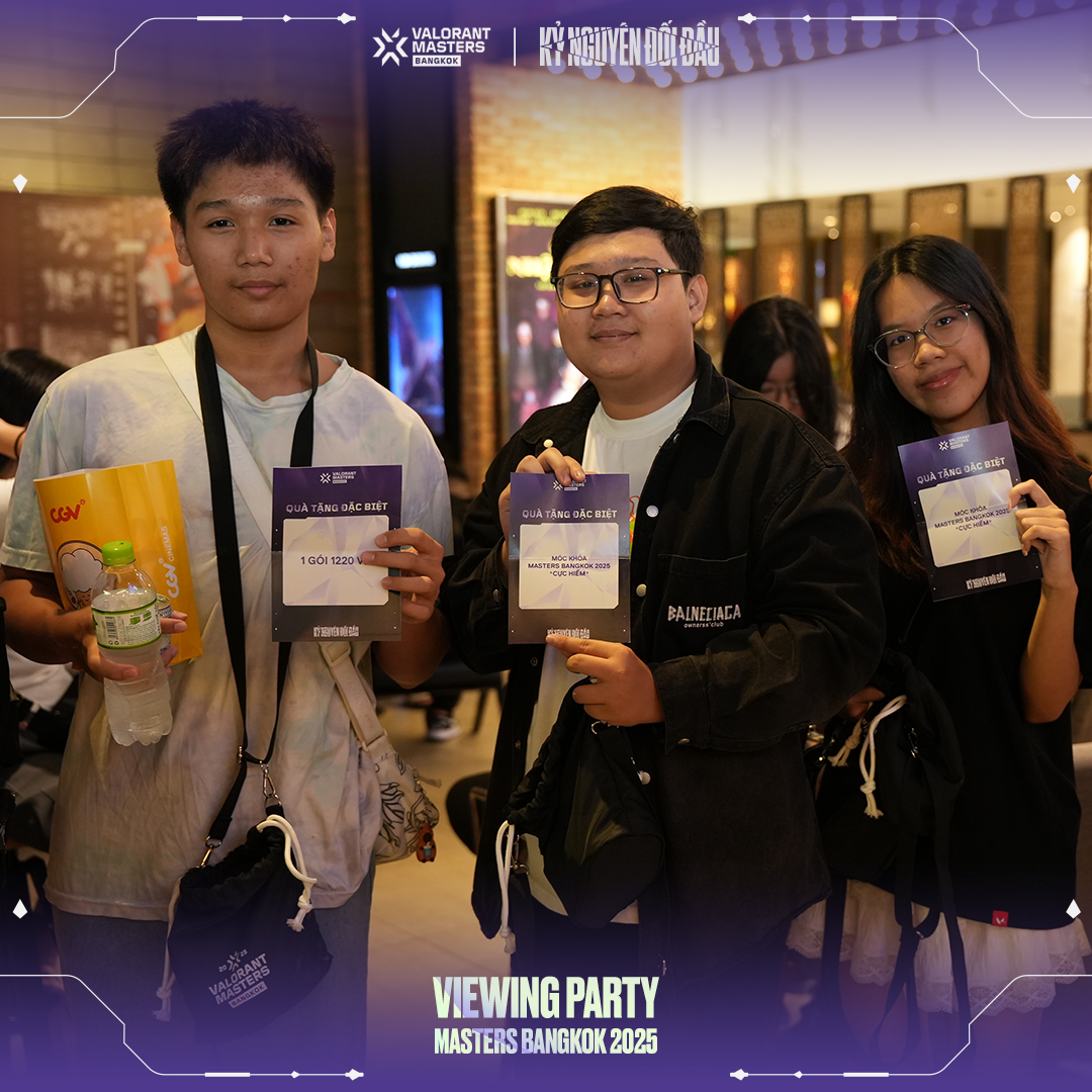 Để hòa chung vào không khí cuồng nhiệt của Masters Bangkok, VNGGames đã tổ chức chuỗi sự kiện Viewing Party hoành tráng tại CGV Cinemas ở TP.HCM, Hà Nội, Đà Nẵng, Hải Phòng và Bình Dương. Với tên gọi "Kỷ Nguyên Đối Đầu", Viewing Party Masters Bangkok thể hiện sự đầu tư nghiêm túc và tâm huyết của VNGGames dành cho cộng đồng VALORANT. Hãy cùng điểm qua những khoảnh khắc đáng nhớ tại từng địa điểm & truy cập vào đây để xem thêm hình ảnh: