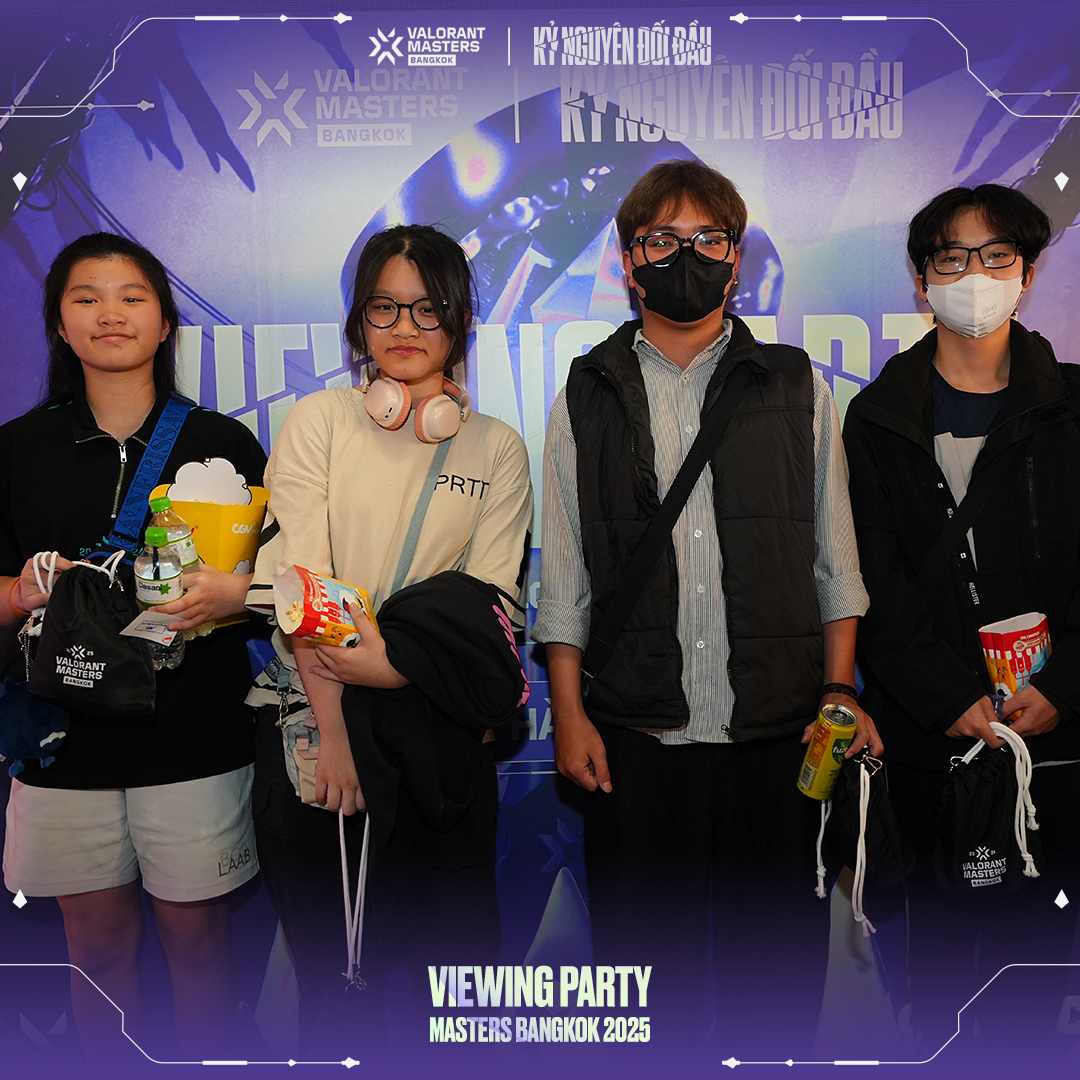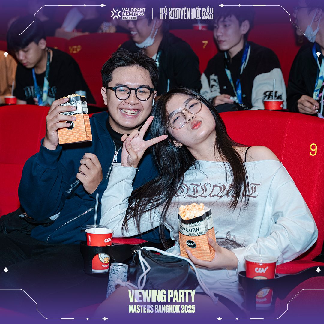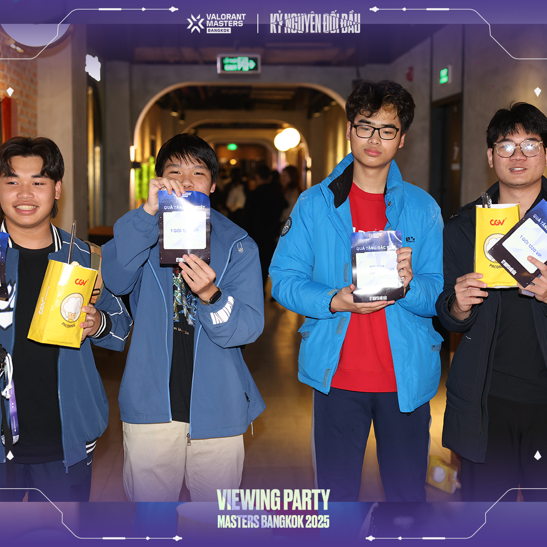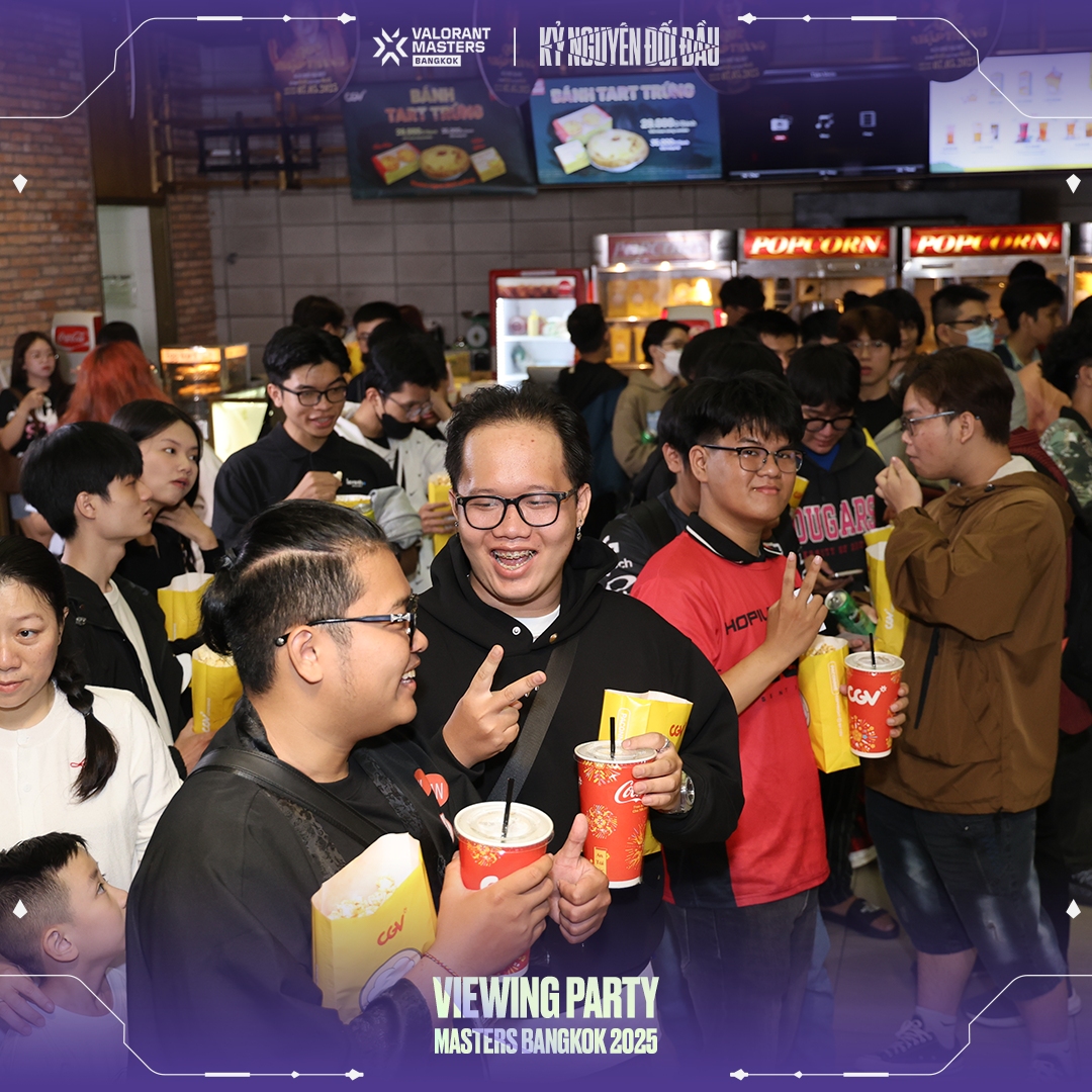 Để hòa chung vào không khí cuồng nhiệt của Masters Bangkok, VNGGames đã tổ chức chuỗi sự kiện Viewing Party hoành tráng tại CGV Cinemas ở TP.HCM, Hà Nội, Đà Nẵng, Hải Phòng và Bình Dương. Với tên gọi "Kỷ Nguyên Đối Đầu", Viewing Party Masters Bangkok thể hiện sự đầu tư nghiêm túc và tâm huyết của VNGGames dành cho cộng đồng VALORANT. Hãy cùng điểm qua những khoảnh khắc đáng nhớ tại từng địa điểm & truy cập vào đây để xem thêm hình ảnh: