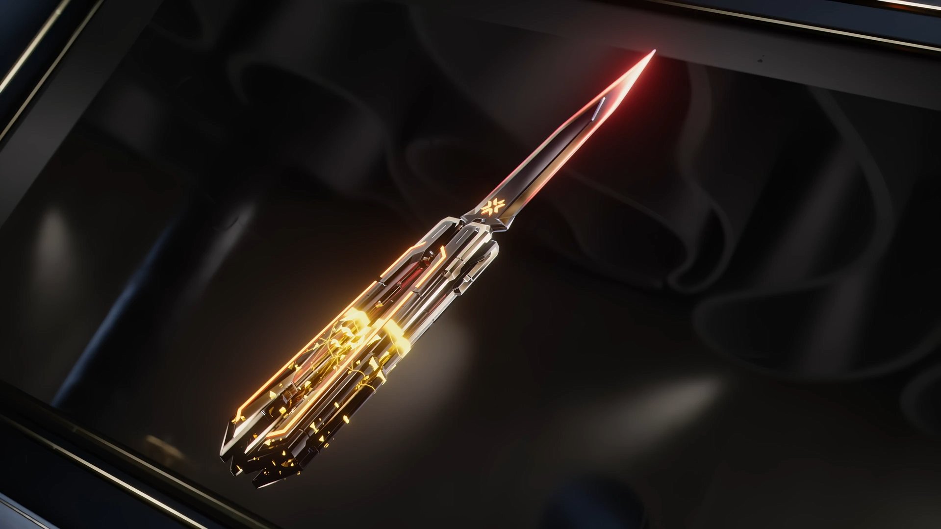 Dao bướm với hoạt ảnh vàng – đỏ chuyển động liên tục, đi kèm động tác kiểm tra vũ khí hoàn toàn mới. Khi bạn trở thành MVP, hào quang lửa bao quanh melee, mang lại cảm giác “đã tay” trong từng cú vung.