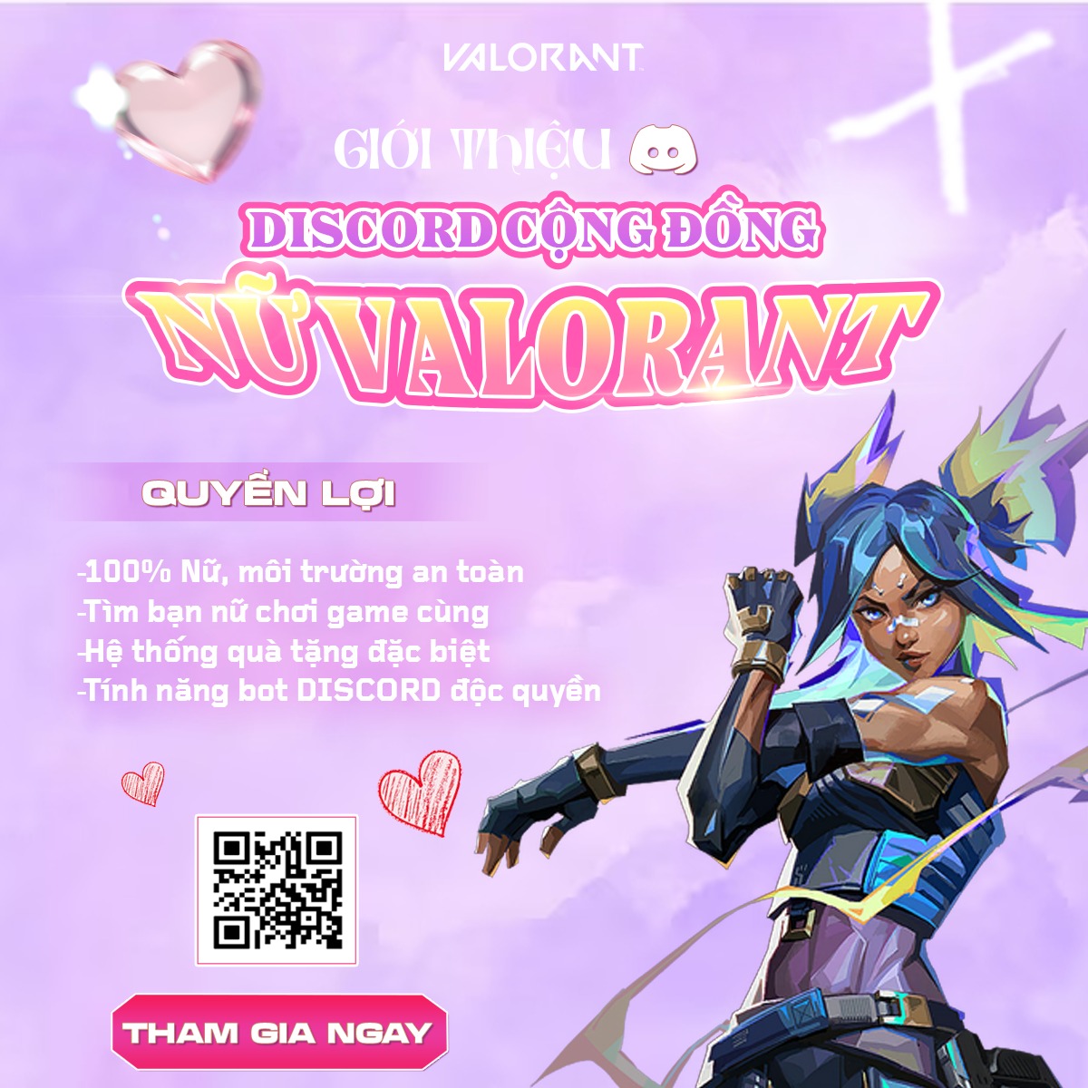 “Làng Thơ VALORANT” là cộng đồng đặc biệt được tạo ra dành riêng cho phái đẹp yêu thích tựa game bắn súng chiến thuật. Không chỉ là nơi giao lưu và kết nối, đây còn là một không gian an toàn, ấm áp và đầy đặc quyền - nơi mỗi cô gái đều được trân trọng, sẻ chia và tự tin thể hiện cá tính của mình.
