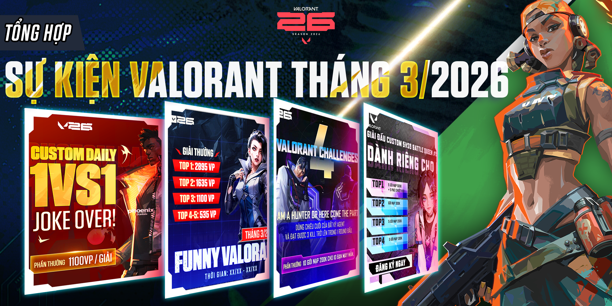Tháng 3 này, cộng đồng VALORANT Việt Nam hứa hẹn sẽ bùng nổ với loạt sự kiện thú vị dành riêng cho người chơi ở mọi cấp độ – từ những nữ tuyển thủ cá tính đến những người yêu thích thử thách và sáng tạo nội dung.