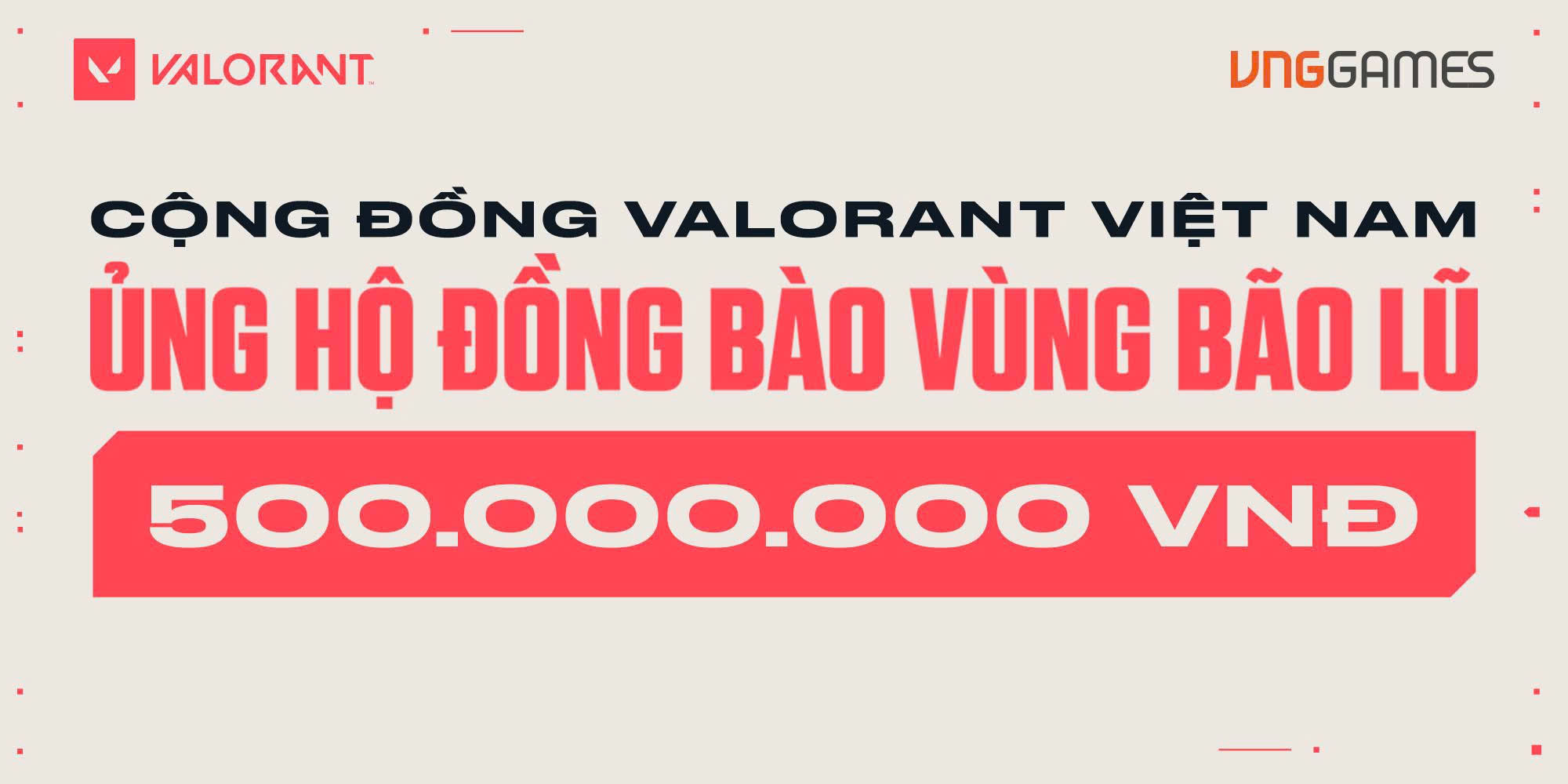 Nhằm chung tay san sẻ khó khăn cùng bà con đang chịu ảnh hưởng nặng nề bởi bão lũ, Cộng đồng VALORANT Việt Nam quyết định ủng hộ 500.000.000 VNĐ để hỗ trợ công tác cứu trợ, khắc phục hậu quả thiên tai và giúp người dân sớm ổn định cuộc sống.