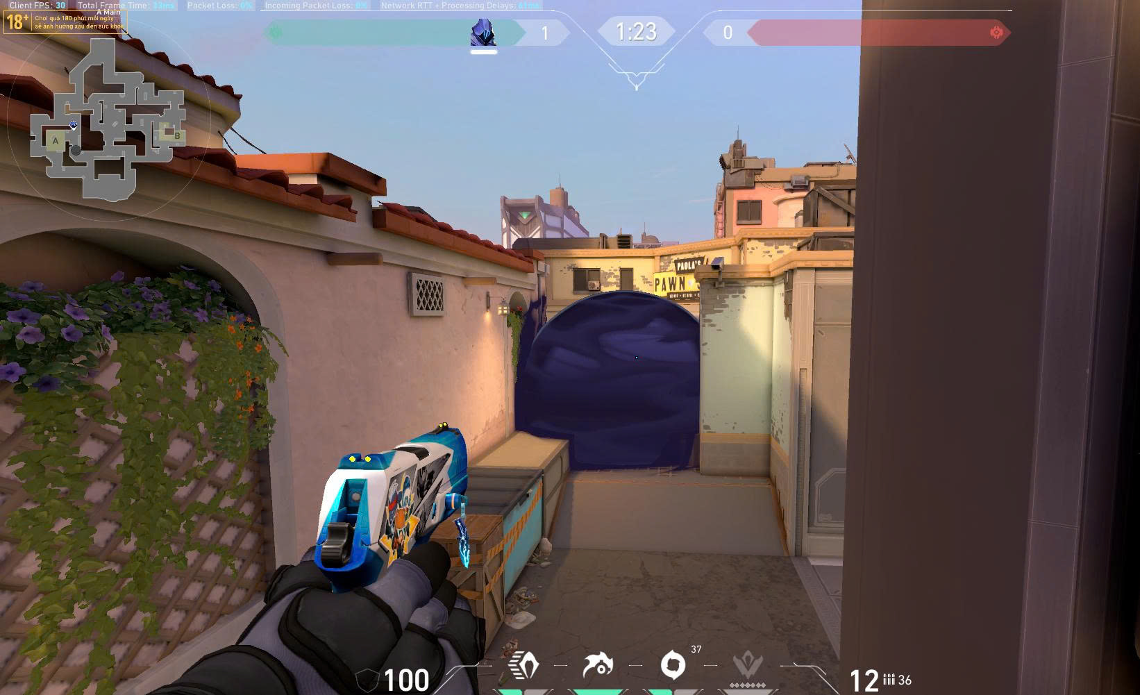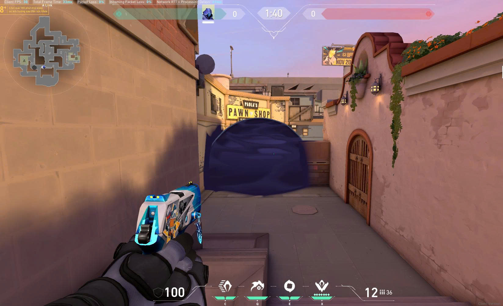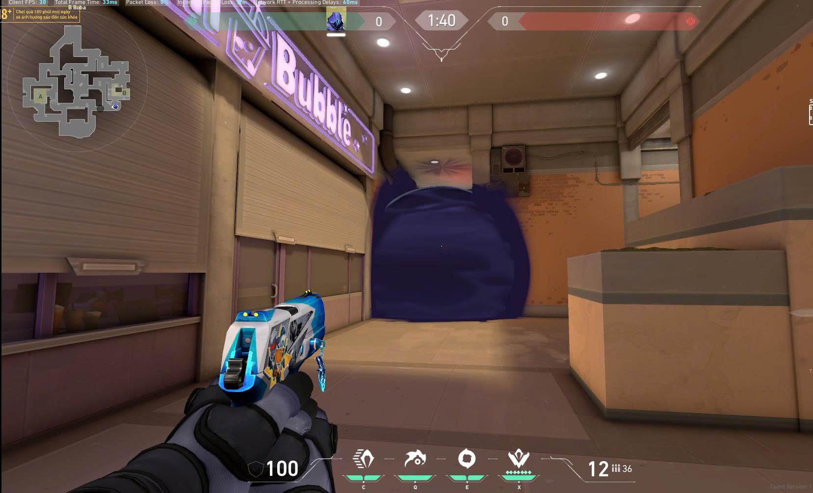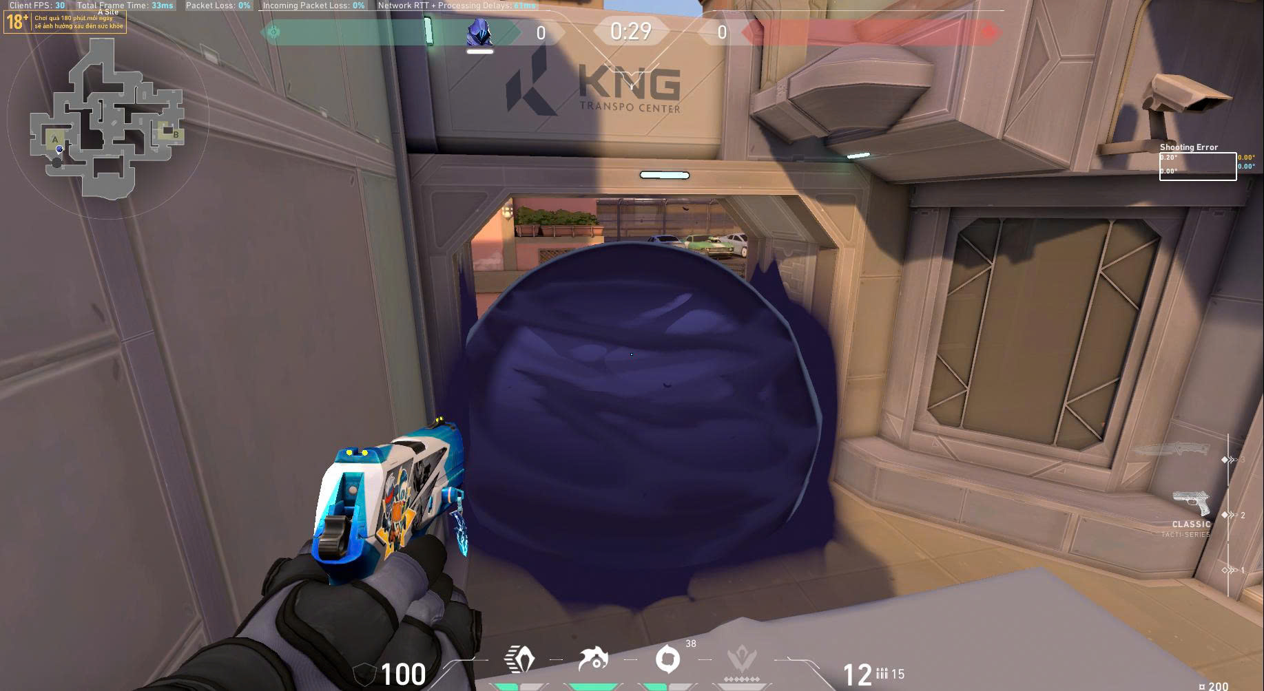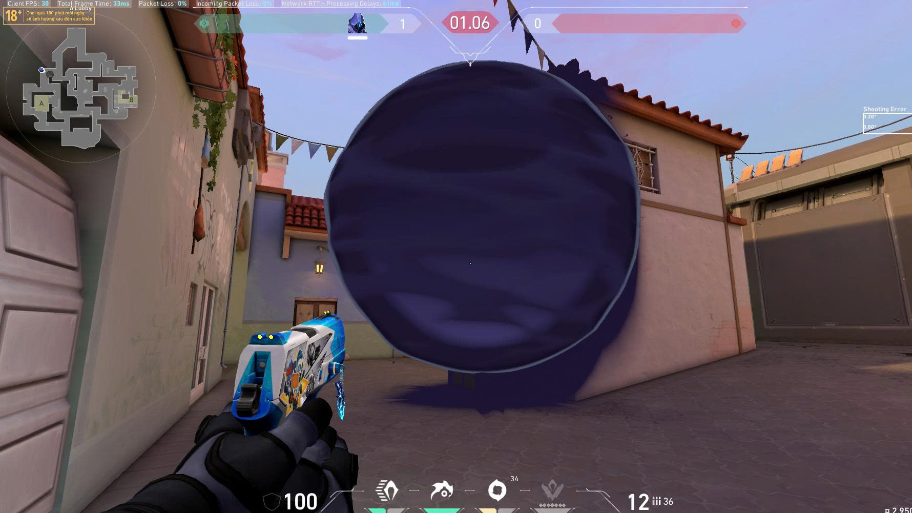 Lưu ý: Kết hợp flash hoặc teleport của Omen để tạo góc đẩy bất ngờ trong lúc smoke đang còn hiệu lực.