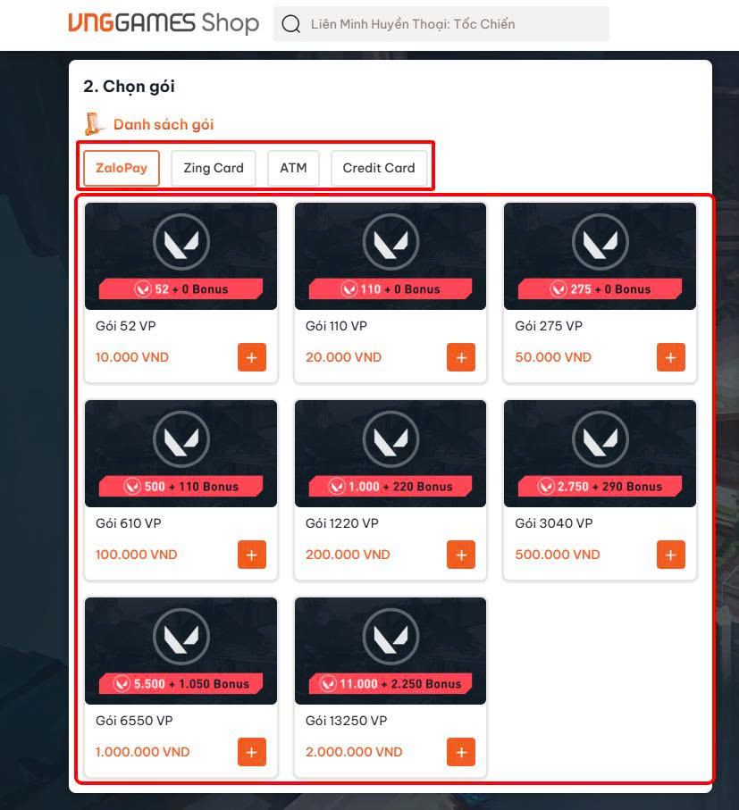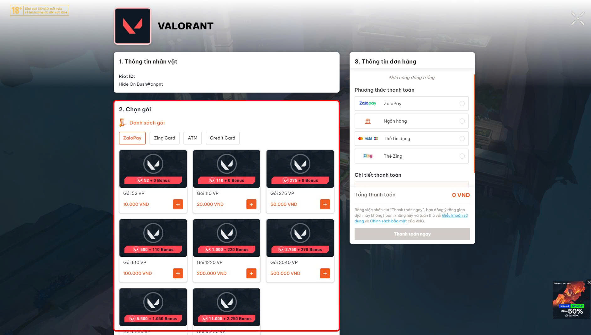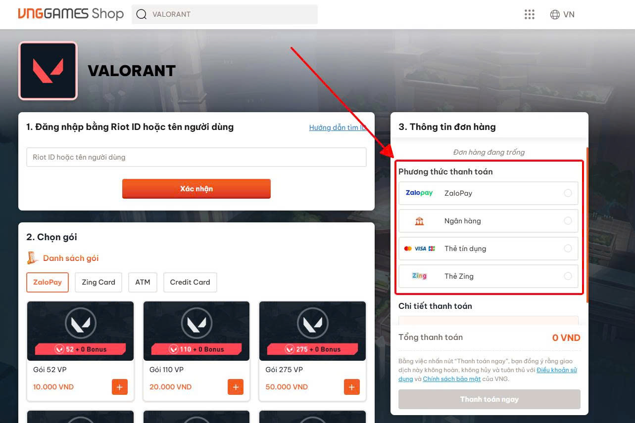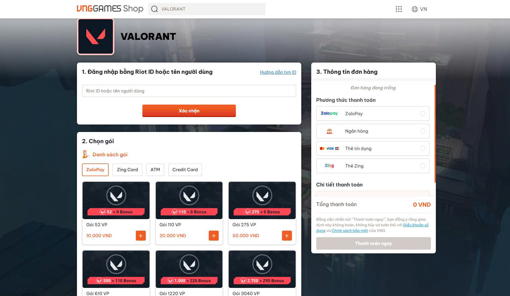 2.1. Nạp qua website chính thức của VALORANT VNGGames