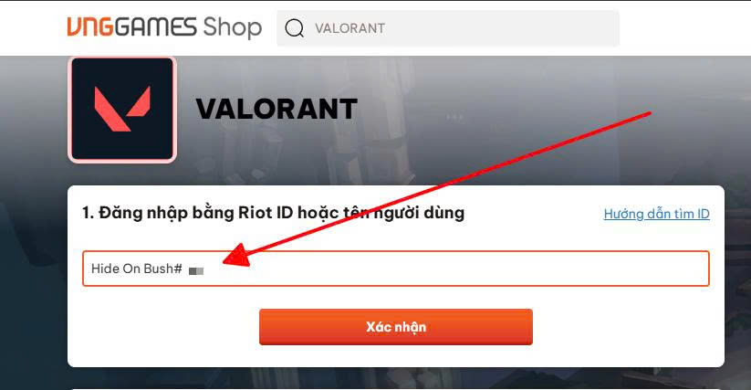Bước 2: Đăng nhập tên người dùng hoặc Riot ID để đảm bảo đúng tài khoản cần nạp.