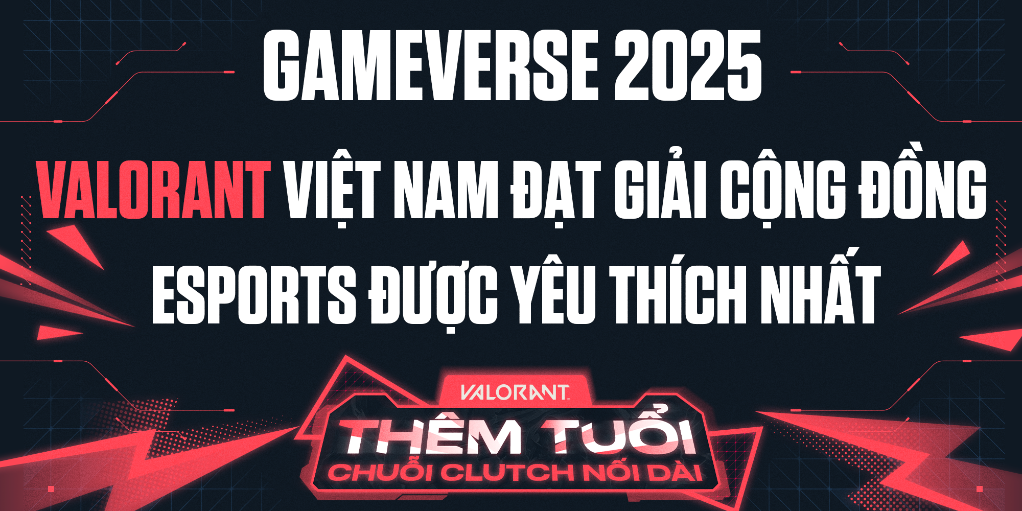 Tại lễ trao giải Vietnam GameVerse Awards 2025, cộng đồng VALORANT Việt Nam chính thức được vinh danh với danh hiệu: CỘNG ĐỒNG THỂ THAO ĐIỆN TỬ ĐƯỢC YÊU THÍCH NHẤT NĂM 2025. Giải thưởng không chỉ là sự ghi nhận, mà còn là minh chứng cho hành trình chúng ta đã cùng nhau viết nên bằng thanh xuân, bằng đam mê và bằng tất cả nhiệt huyết dành cho VALORANT.