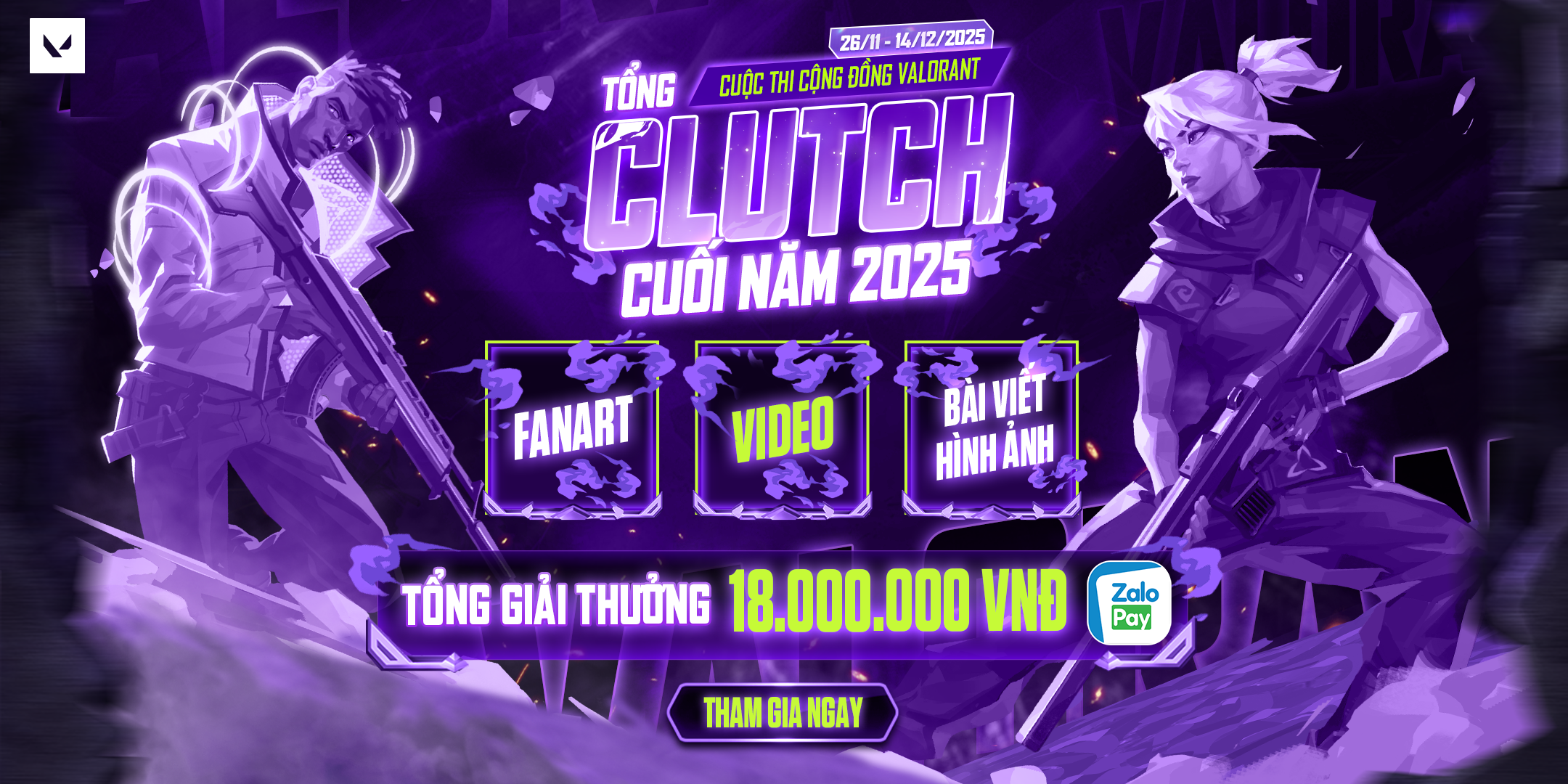 Tổng clutch cuối năm 2025 là sân chơi tổng kết cuối năm dành cho tất cả game thủ, fanart artist, editor và những ai yêu thích VALORANT. Dù bạn có highlight ấn tượng, câu chuyện độc đáo hay kỷ niệm vui buồn, tất cả đều được chào đón.