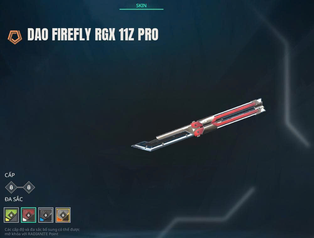 Một trong những con dao được yêu thích nhất — âm thanh “phá không khí” khi rút ra và kiểm tra là thứ khiến fan RGX phát cuồng. Với 3 biến thể màu sắc cùng hiệu ứng ánh sáng nổi bật, Firefly là lựa chọn “nghe đã tai, nhìn đã mắt”.