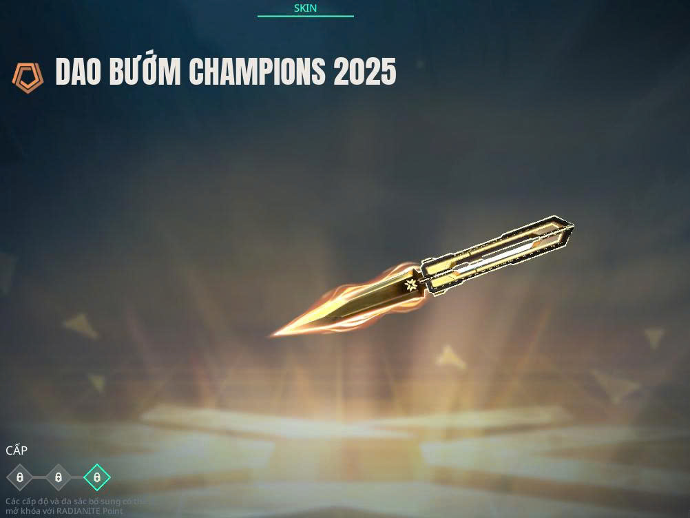 Champions 2025 Butterfly Knife sở hữu thiết kế đen bóng chủ đạo, kết hợp các điểm nhấn đỏ – vàng đầy uy lực. Khi hạ gục kẻ địch, lưỡi dao phát sáng ánh vàng rực rỡ và nếu bạn là top fragger, toàn bộ dao sẽ chuyển sang sắc vàng kim, như thể đang cầm trên tay chiếc cúp vô địch. Mẫu dao bướm champions này là phiên bản giới hạn, không bao giờ quay trở lại cửa hàng hay Night Market.