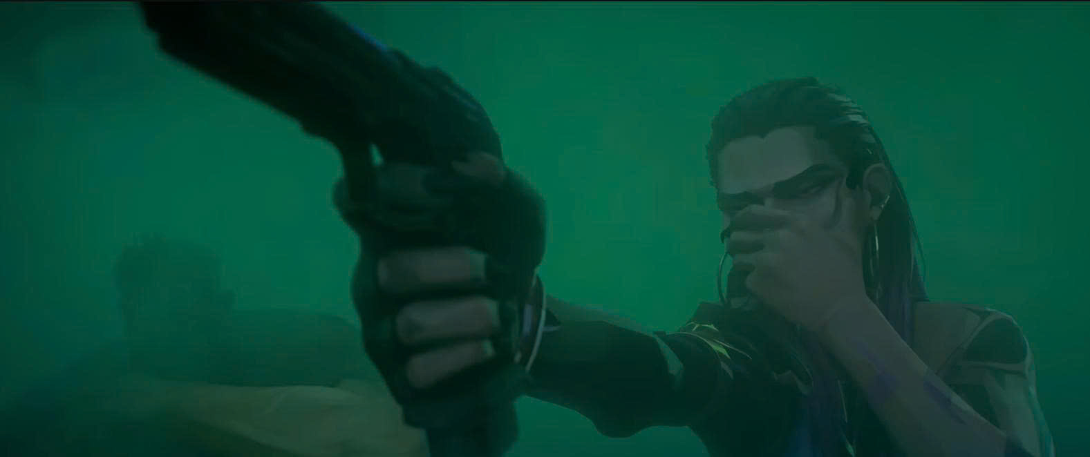 Trong phân cảnh đội của Viper đột kích, người xem phát hiện Reyna sử dụng một khẩu súng lục lạ chưa từng xuất hiện trong trò chơi. Thiết kế nhỏ gọn và hiện đại của vũ khí này làm dấy lên dự đoán rằng đây có thể là trang bị phụ hoàn toàn mới, nhiều khả năng nằm giữa phân khúc Classic và Ghost.