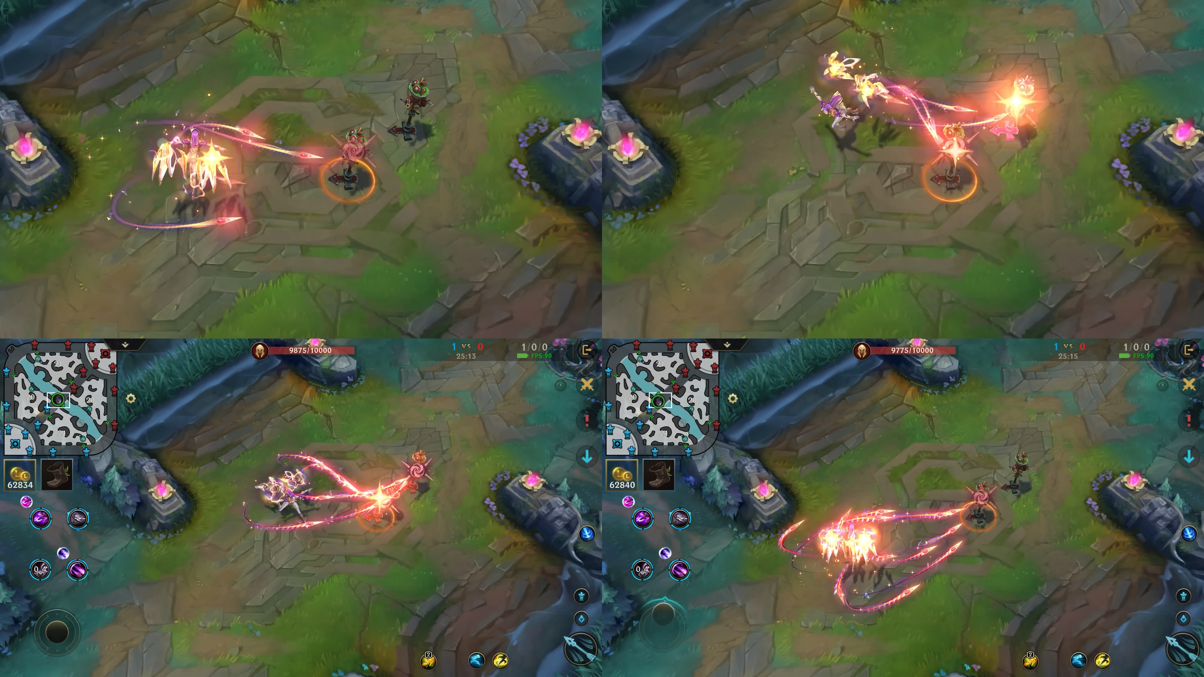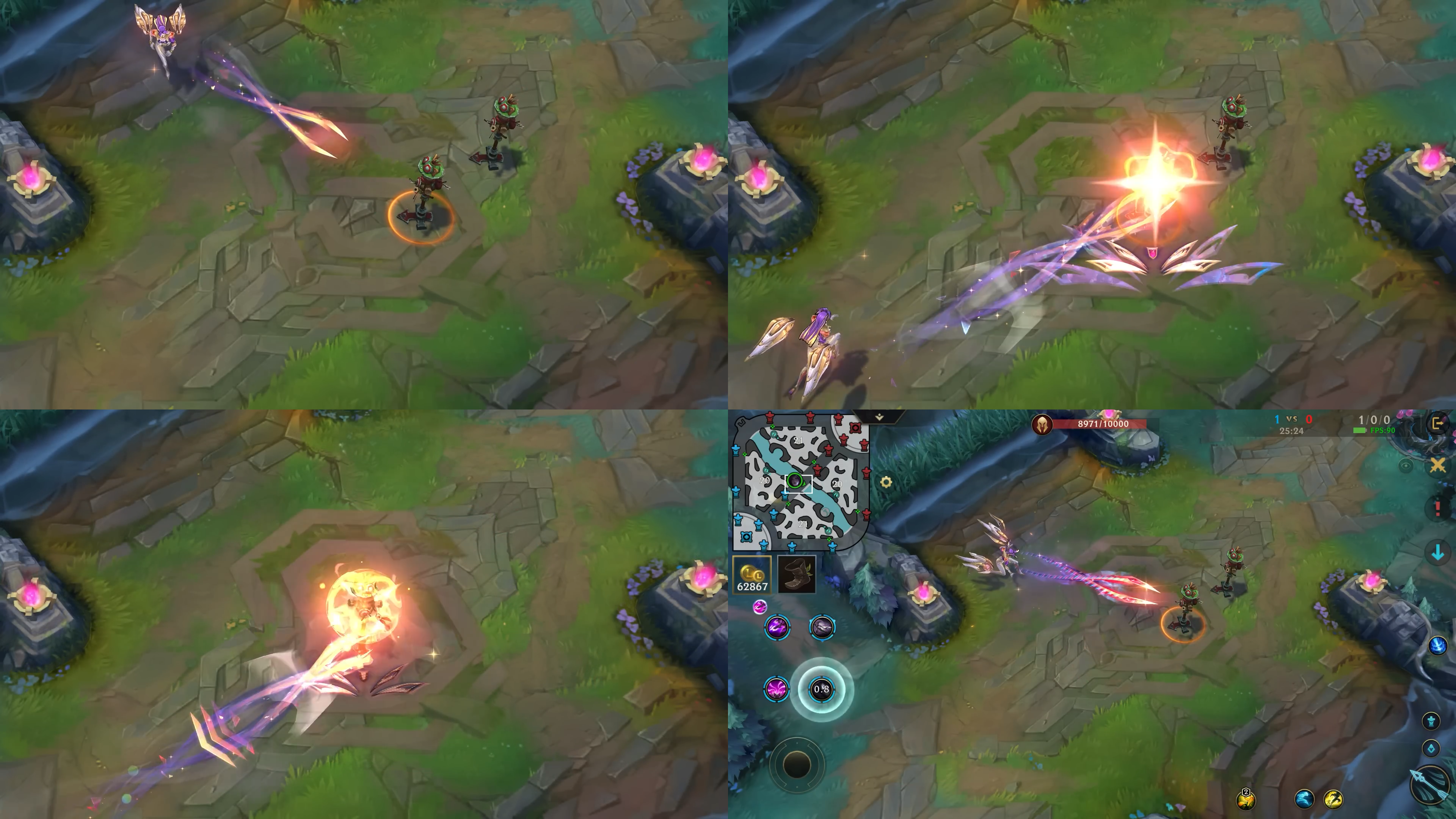 Khi kích hoạt, Kai’Sa được bao phủ bởi hiệu ứng ánh sáng chuyển động nhanh, đi kèm âm thanh như tiếng động cơ phân khối lớn đang tăng tốc, tạo cảm giác vô cùng phấn khích.