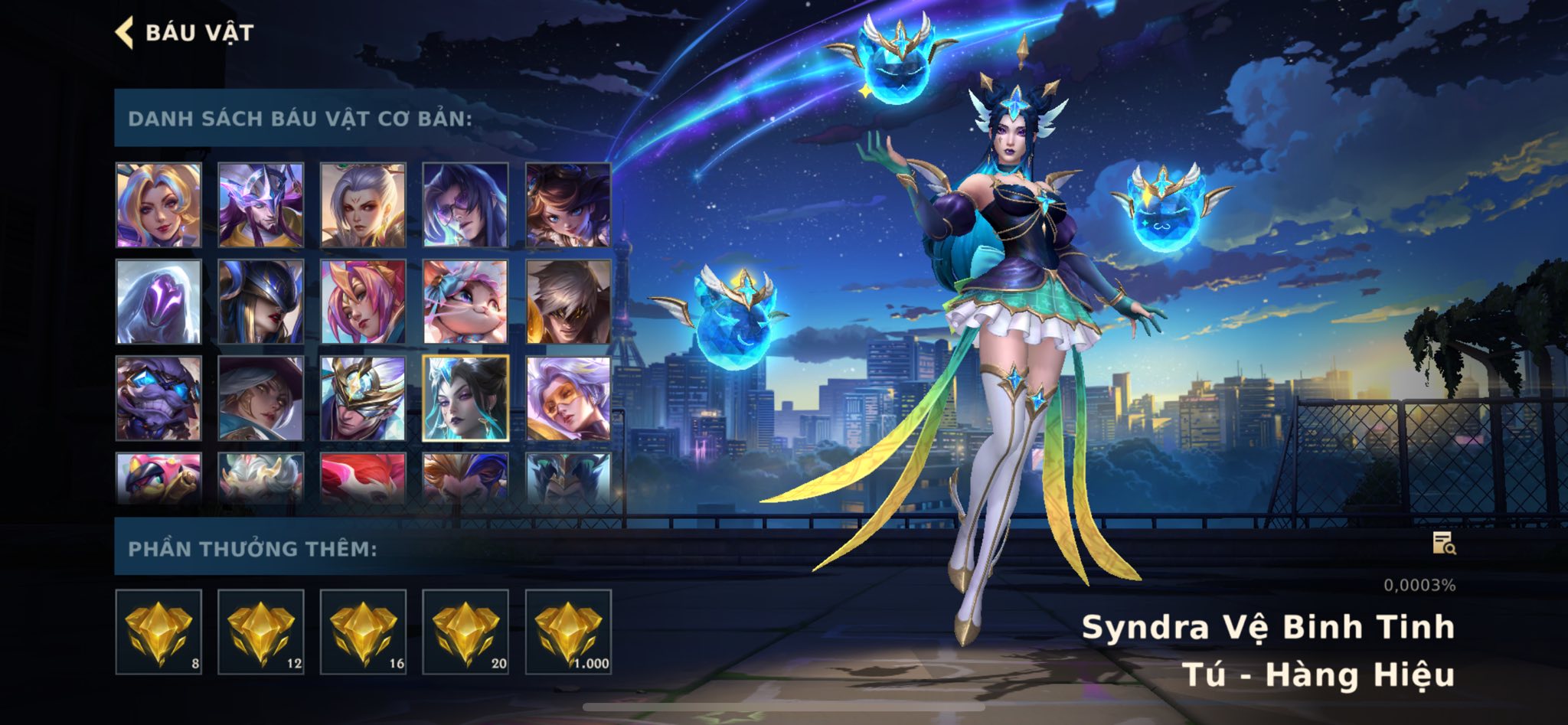 - Syndra Vệ Binh Tinh Tú Hàng Hiệu: Tỉ lệ 0,0003%.