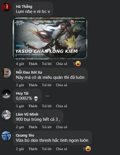 - "Vừa bú skin Thresh Hắc Tinh ngon luôn. 900 bụi trùng hết cả 3" - Một chút an ủi hiếm hoi