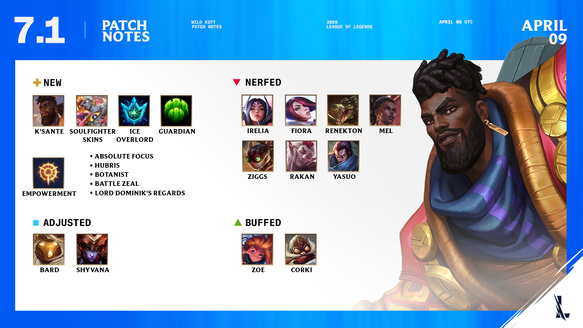 Tướng được tăng sức mạnh (Buff): Zoe, Corki.