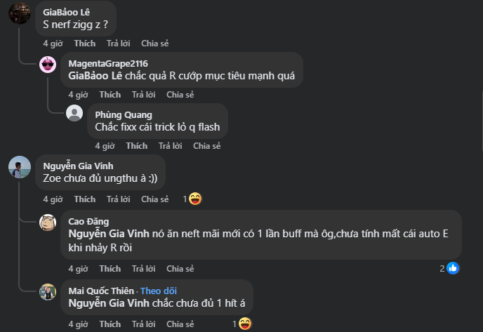 Có thể thấy, bản cập nhật 7.1 đang tạo ra một làn sóng tranh luận mạnh mẽ trong cộng đồng. Trong khi những người chơi Zoe tỏ ra phấn khích trước những thay đổi tích cực, thì không ít người chơi “tủ” các vị tướng như Renekton hay Rakan lại bày tỏ sự tiếc nuối khi các vị tướng của mình bị điều chỉnh sức mạnh.