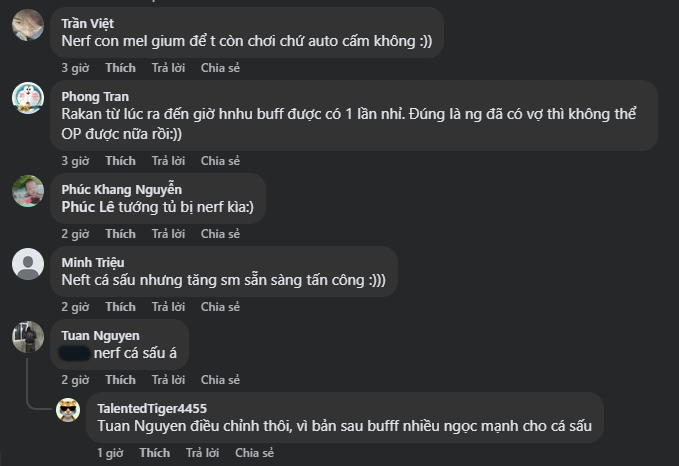 - "Nerf con mel gium để t còn chơi chứ auto cấm không :))"