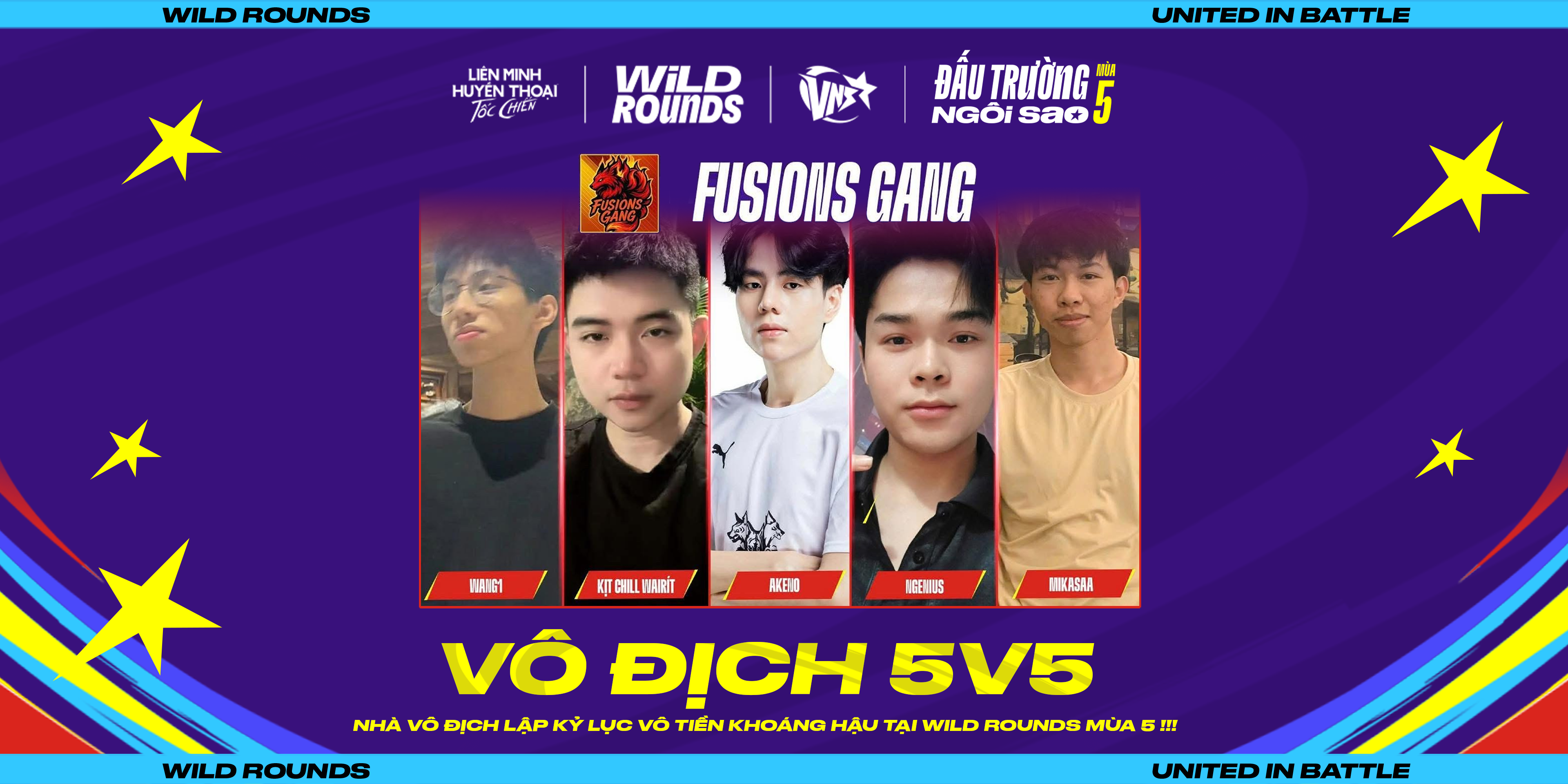 Sau những vòng đấu nghẹt thở, Wild Rounds: Đấu Trường Ngôi Sao mùa 5 đã chính thức khép lại với chức vô địch thuộc về Fusions Gang (FsG). Đội tuyển không chỉ lên ngôi thuyết phục mà còn tạo dấu ấn khi trở thành quân đoàn đầu tiên bảo vệ thành công chức vô địch trong hai mùa liên tiếp.