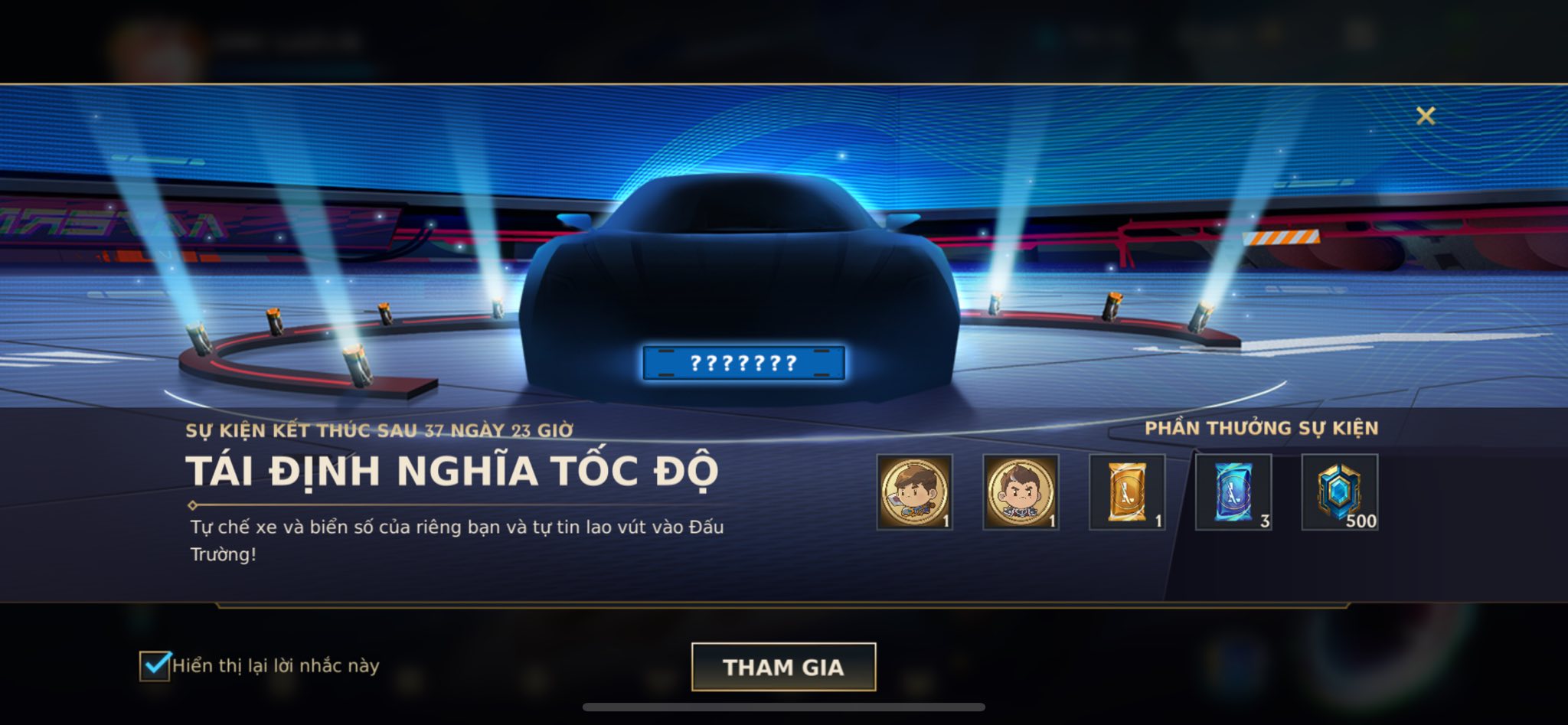 Bạn đã sẵn sàng bứt tốc vào Đấu Trường với chiếc xe mang đậm dấu ấn cá nhân của riêng mình chưa? Tham gia ngay “Tái Định Nghĩa Tốc Độ” để tự tay tạo nên siêu xe độc đáo và khoe thành quả cùng bạn bè. Chúc các bạn có những giờ phút “lăn bánh” thật bùng nổ và leo top thật cháy!