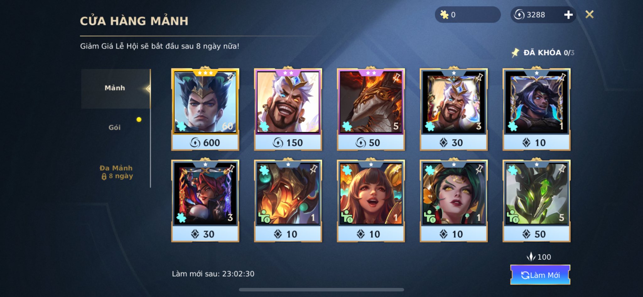- Tích lũy mảnh dài hạn: Vì mảnh không hết hạn, bạn hoàn toàn có thể giữ lại nếu chưa nhắm đến các skin hiện tại như Master Yi hay Gragas. Trong tương lai, nhiều dòng trang phục và vật phẩm mới sẽ tiếp tục được cập nhật vào hệ thống, giúp lượng mảnh tích lũy của bạn luôn có giá trị sử dụng.