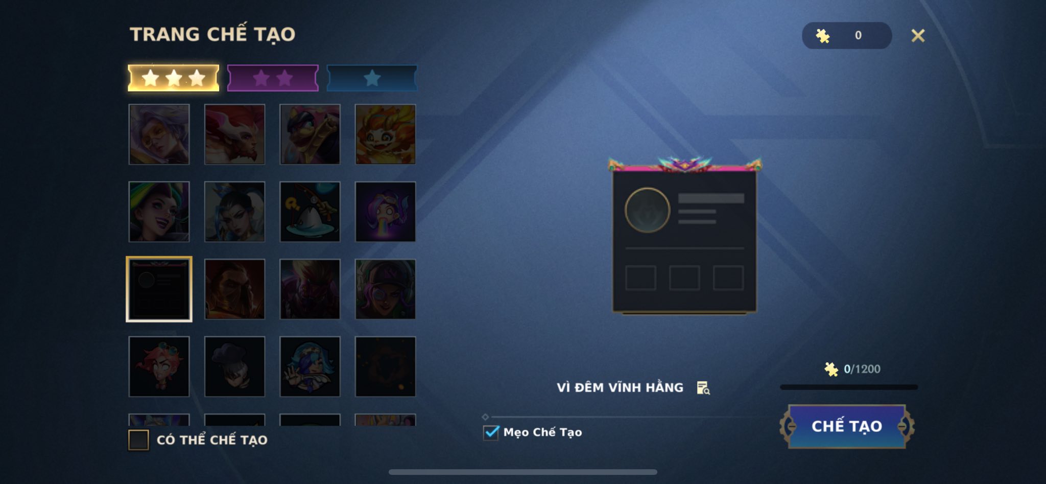 | Nhóm 3 sao | 0,3% | Trang phục bậc cao, vật phẩm bậc Tối Thượng cực hiếm |