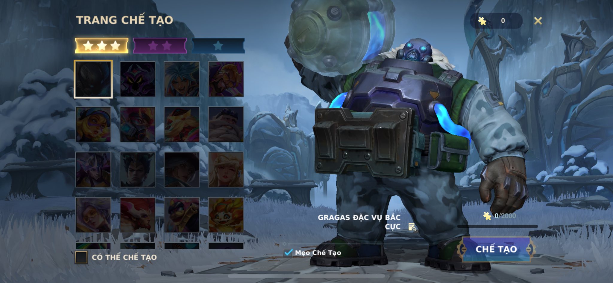 2. Gragas Đặc Vụ Bắc Cực: Cần tổng 2.000 mảnh (tương đương mức giá tại máy chủ Trung Quốc).