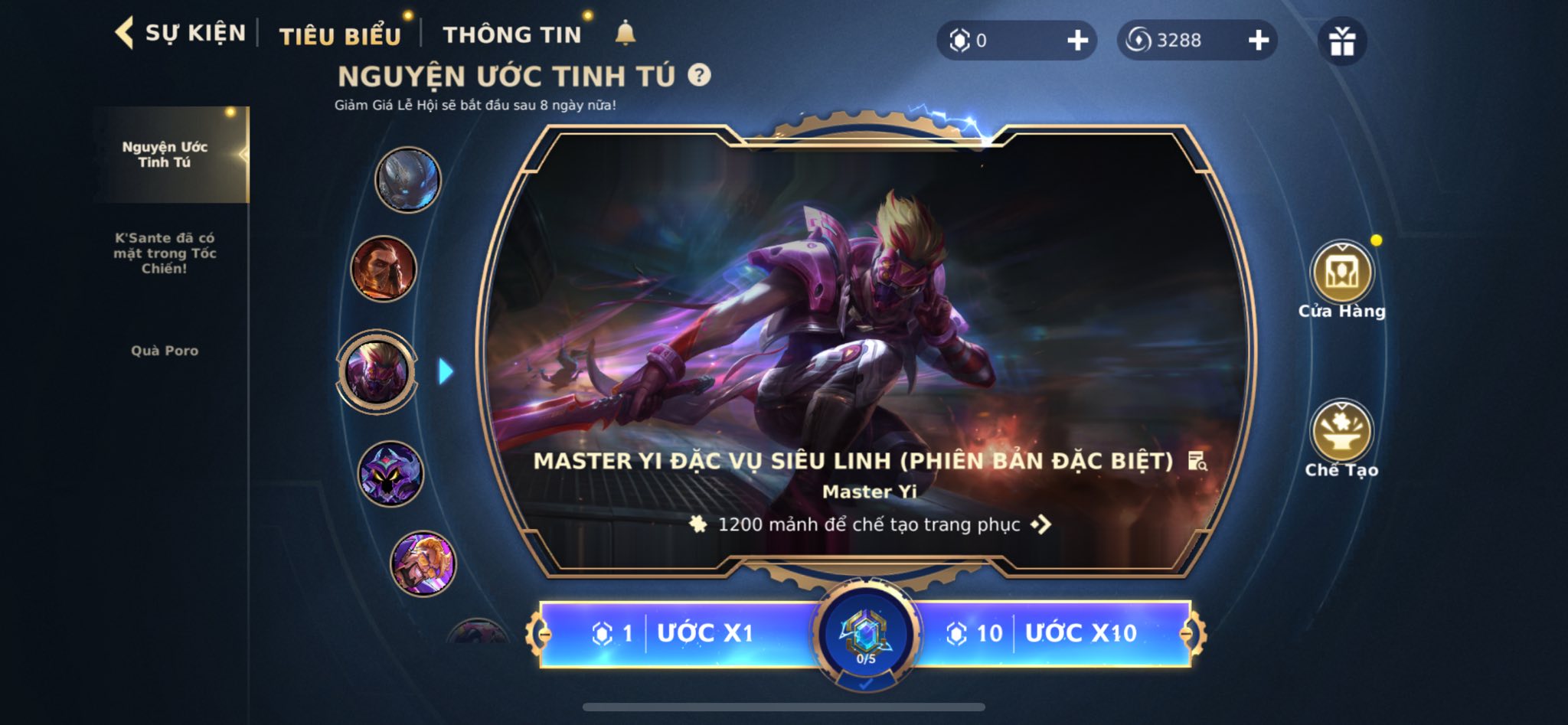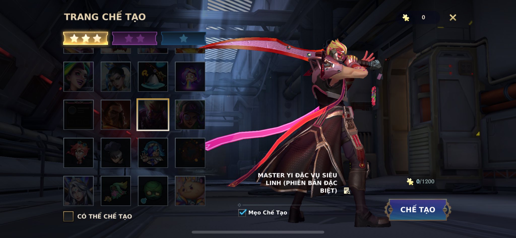 1. Master Yi Đặc Vụ Siêu Linh (Bản Đặc Biệt): Cần 1.200 mảnh.