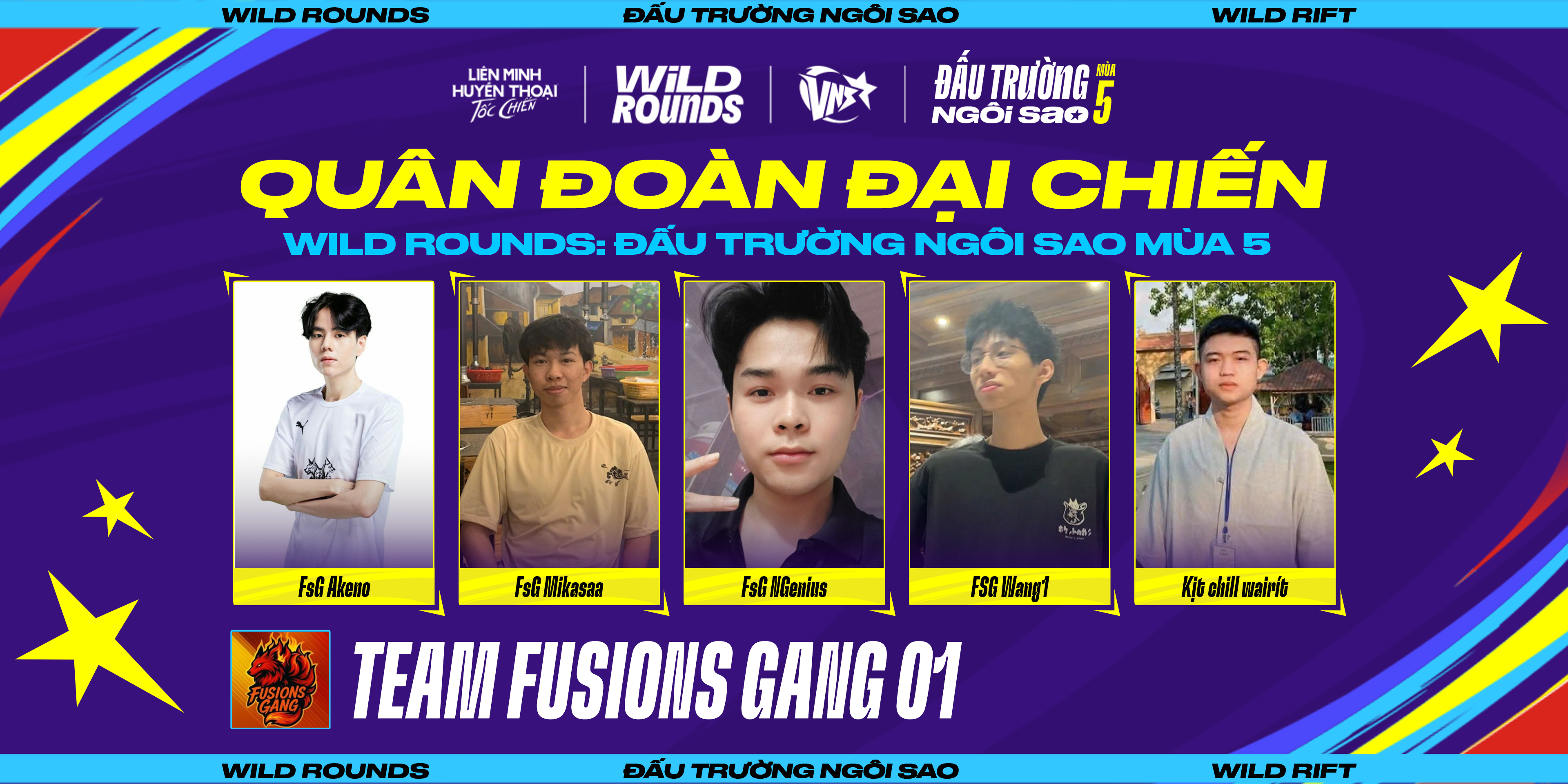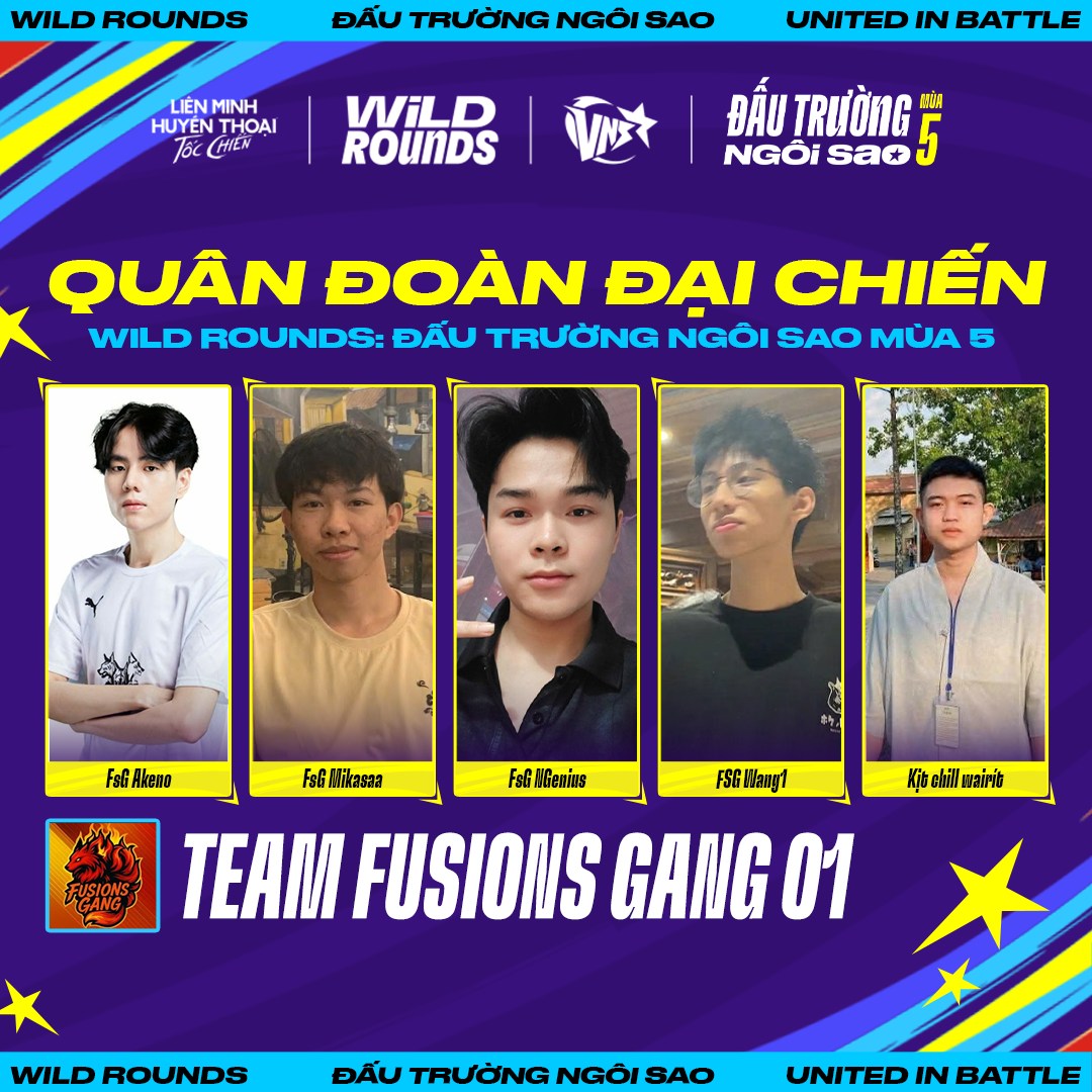 Tiếp nối hành trình vinh danh các tập thể nổi bật, series “Quân Đoàn Đồng Hành Cùng Wild Rounds” tại kỳ này chính thức giới thiệu một cái tên giàu bản sắc trong cộng đồng Tốc Chiến: Team Fusions Gang 01 (FSG 01).