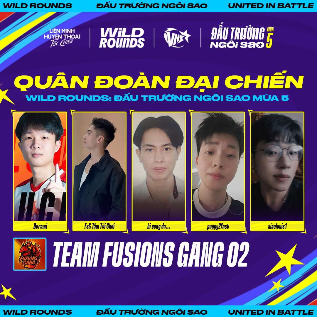 Tiếp nối màn ra mắt đầy ấn tượng của đội hình đầu tiên, series “Quân Đoàn Đồng Hành Cùng Wild Rounds” tại kỳ này tiếp tục giới thiệu mảnh ghép tiếp theo đến từ đại gia đình Fusions Gang: Team Fusions Gang 02.