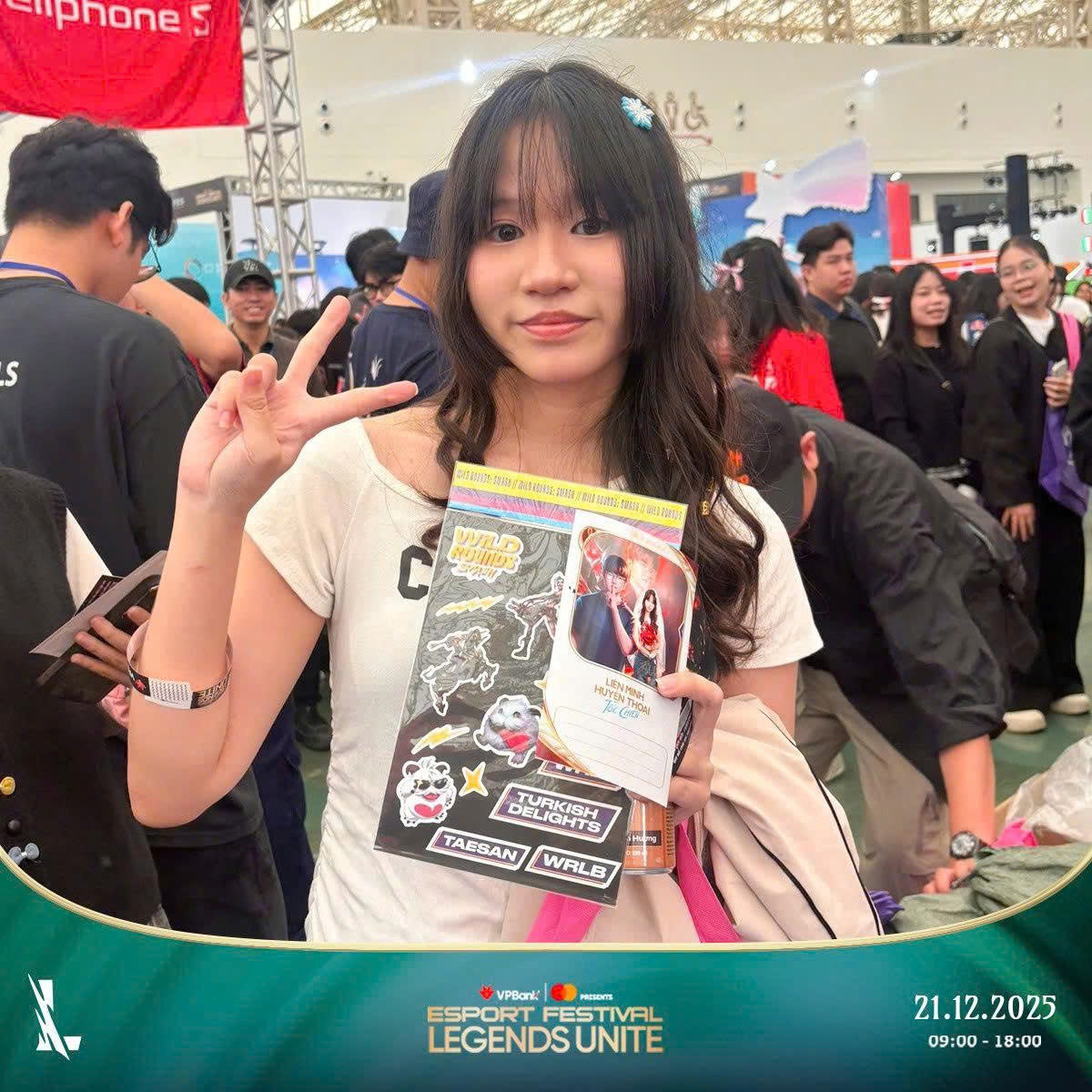 Sự góp mặt của đông đảo các bạn nữ xinh đẹp và cộng đồng yêu game chính là điểm nhấn đặc biệt, giúp booth Liên Minh Huyền Thoại: Tốc Chiến trở thành một trong những khu vực được yêu thích và nổi bật nhất tại VPBank Presents T1 In Vietnam 2025.