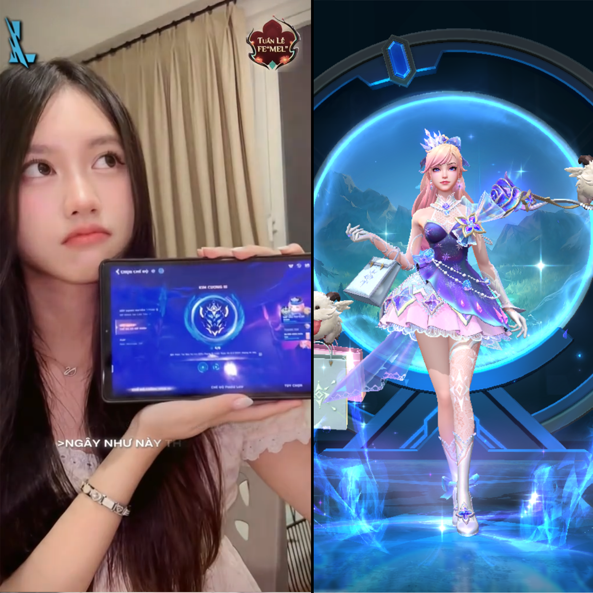 Bước 3: Sử dụng mẫu CapCut Fe “MEL” Challenge được ghim trên TikTok, sau đó đăng video của bạn kèm các hashtag #lienminhtocchien #tocchientuanlefemel.