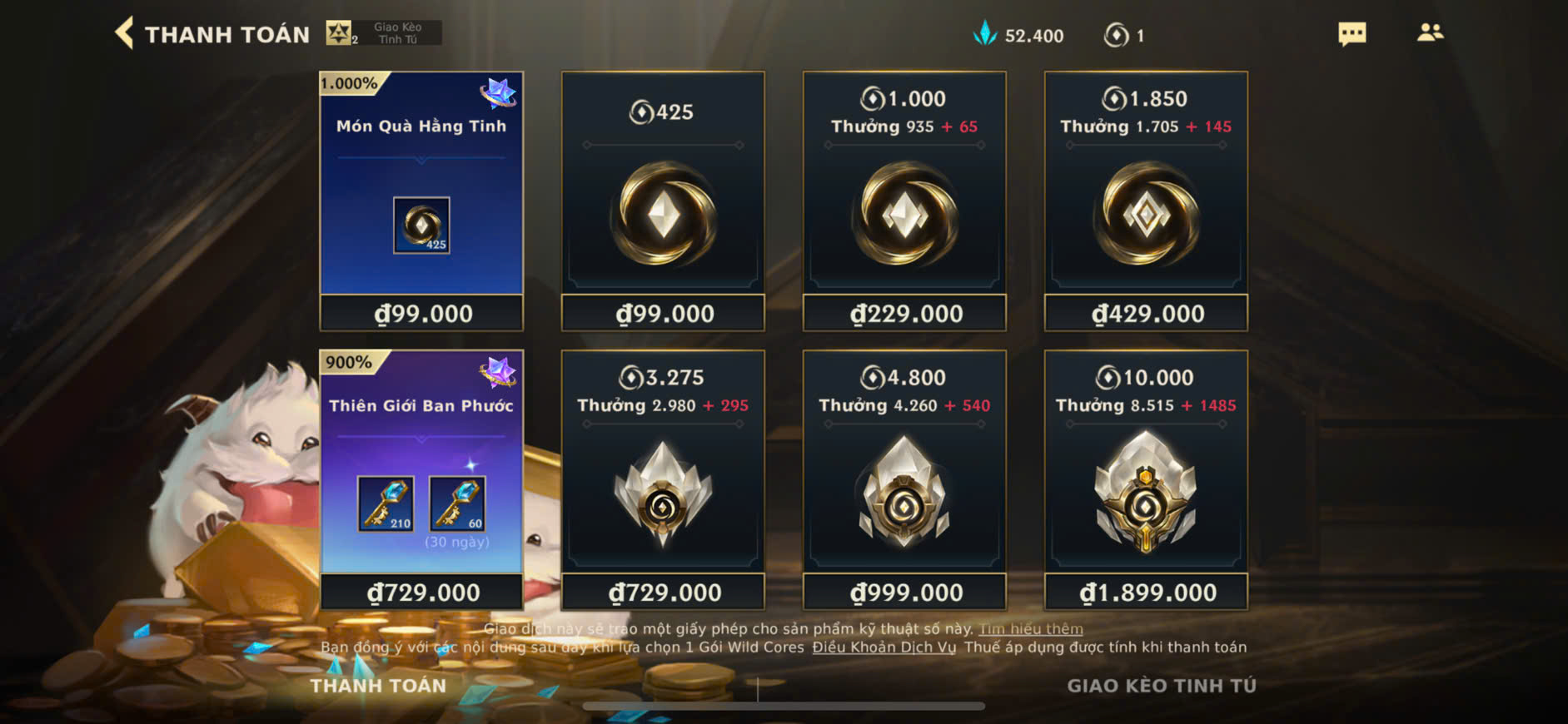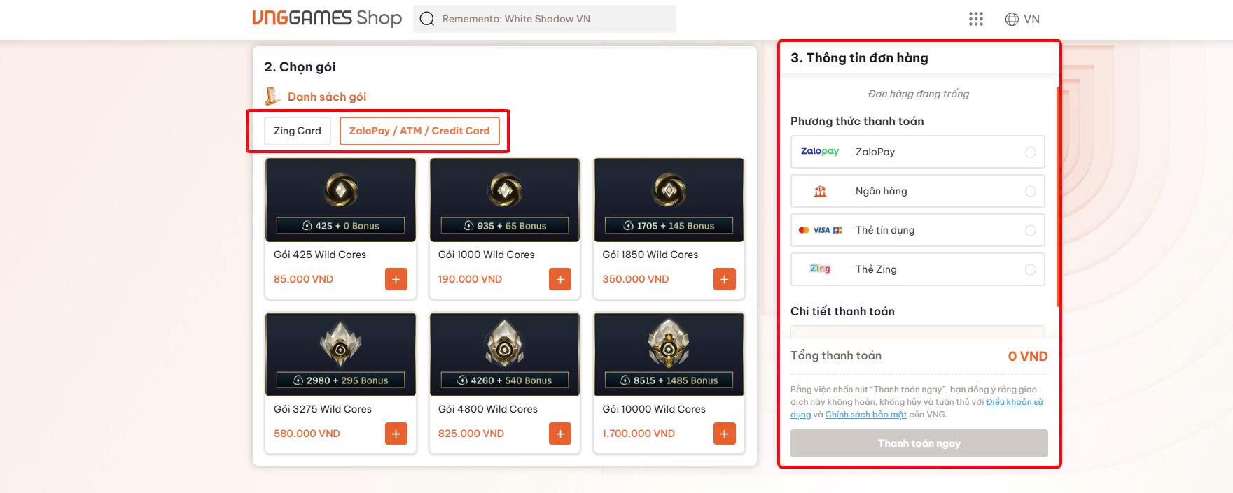 Bước 4: Xác nhận thanh toán theo hướng dẫn trên hệ thống và nhận Wild Cores ngay sau khi giao dịch thành công.