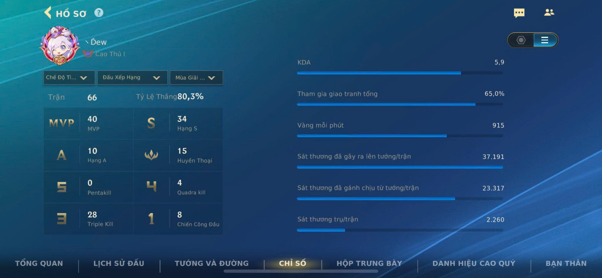 Tỉ lệ thắng: 80,3% (66 trận)
