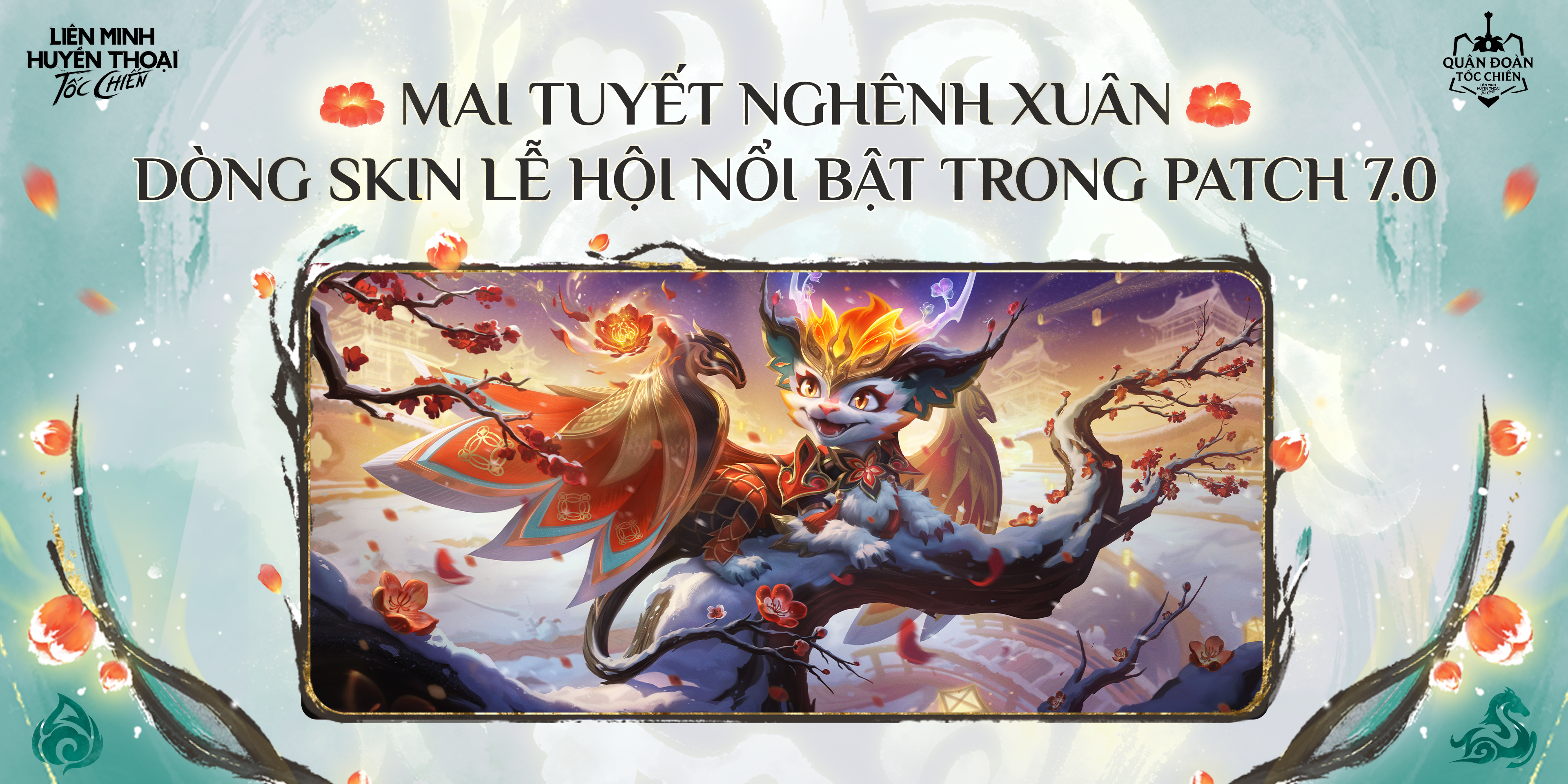 Trong bản cập nhật 7.0 - Ăn Mừng Ionia, Liên Minh Huyền Thoại: Tốc Chiến chính thức giới thiệu dòng skin lễ hội hoàn toàn mới mang tên Mai Tuyết Nghênh Xuân. Bộ sưu tập là sự giao thoa tinh tế giữa sắc xuân phương Đông, vẻ đẹp thanh khiết của hoa mai và làn tuyết đầu năm nhẹ nhàng, trong trẻo.