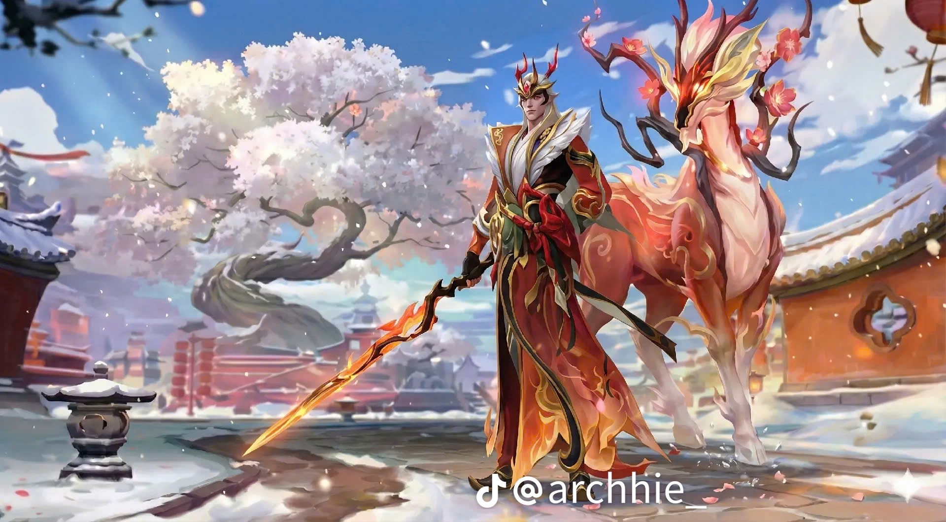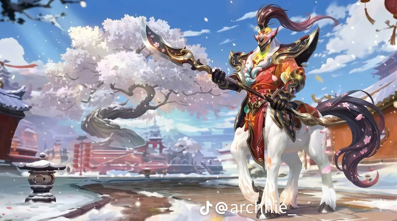 Với dòng skin Mai Tuyết Nghênh Xuân, Hecarim được “khoác lên mình diện mạo hoàn toàn mới” trong hình hài linh mã lễ hội. Bộ giáp mang tông đỏ – vàng chủ đạo, điểm xuyết hoa văn long văn và vân mây,
