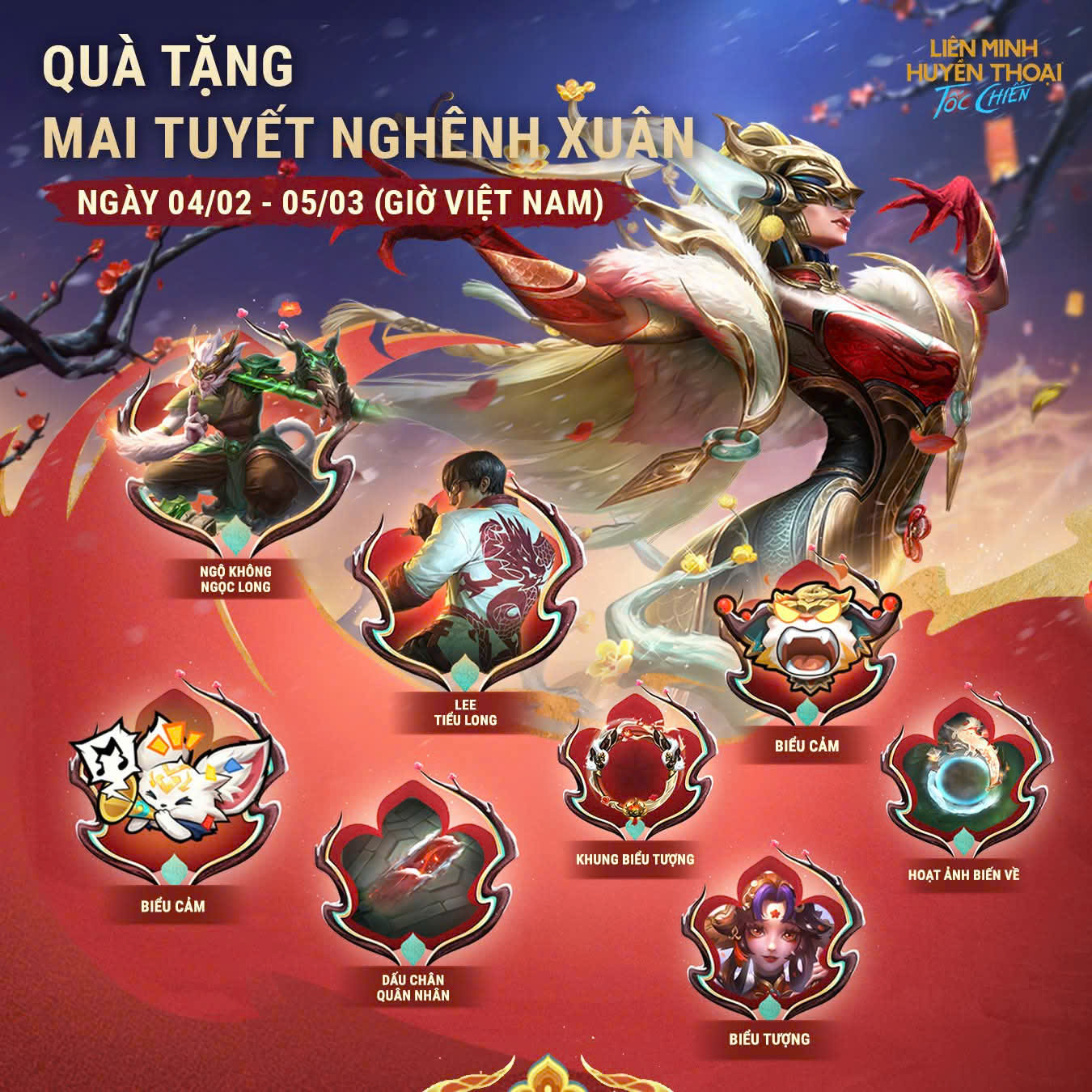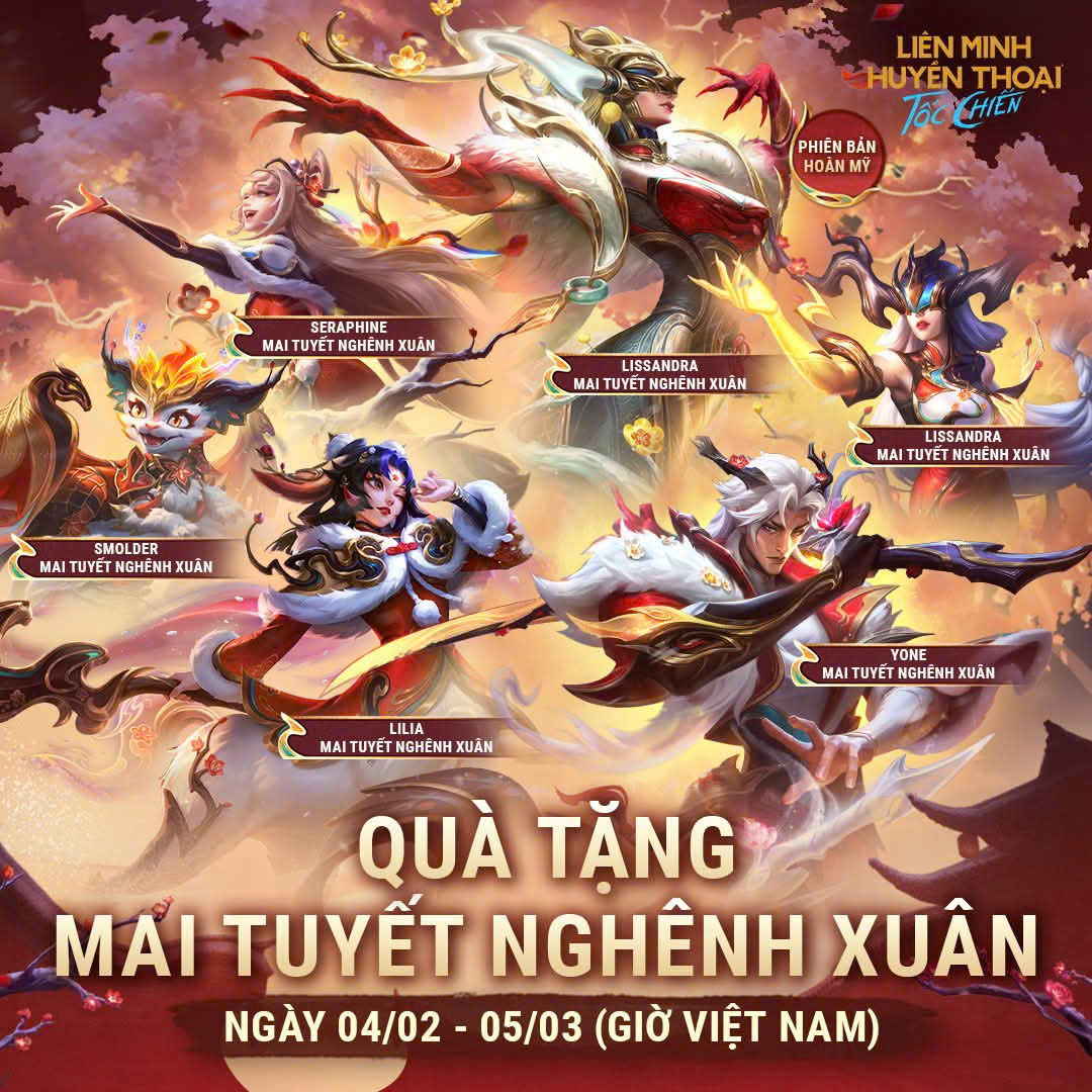 Với chuỗi nhiệm vụ dễ tham gia, quà tặng miễn phí hấp dẫn cùng cơ hội săn vật phẩm hiếm, Mai Tuyết Nghênh Xuân đang trở thành một trong những sự kiện Tết “hào phóng” nhất của Liên Minh Huyền Thoại: Tốc Chiến.