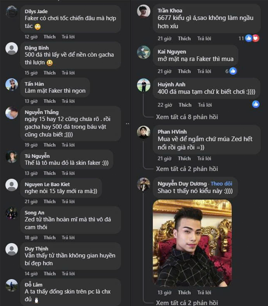 Trên các cộng đồng Tốc Chiến, fan còn hài hước so sánh mức giá có thể “đắt bằng tiền thuê nhà”, nhưng bài đăng vẫn nhận hơn 453 upvote chờ đón, dù một số người đùa tiếc nuối: “Sao không phải Yone hay Sylas?”