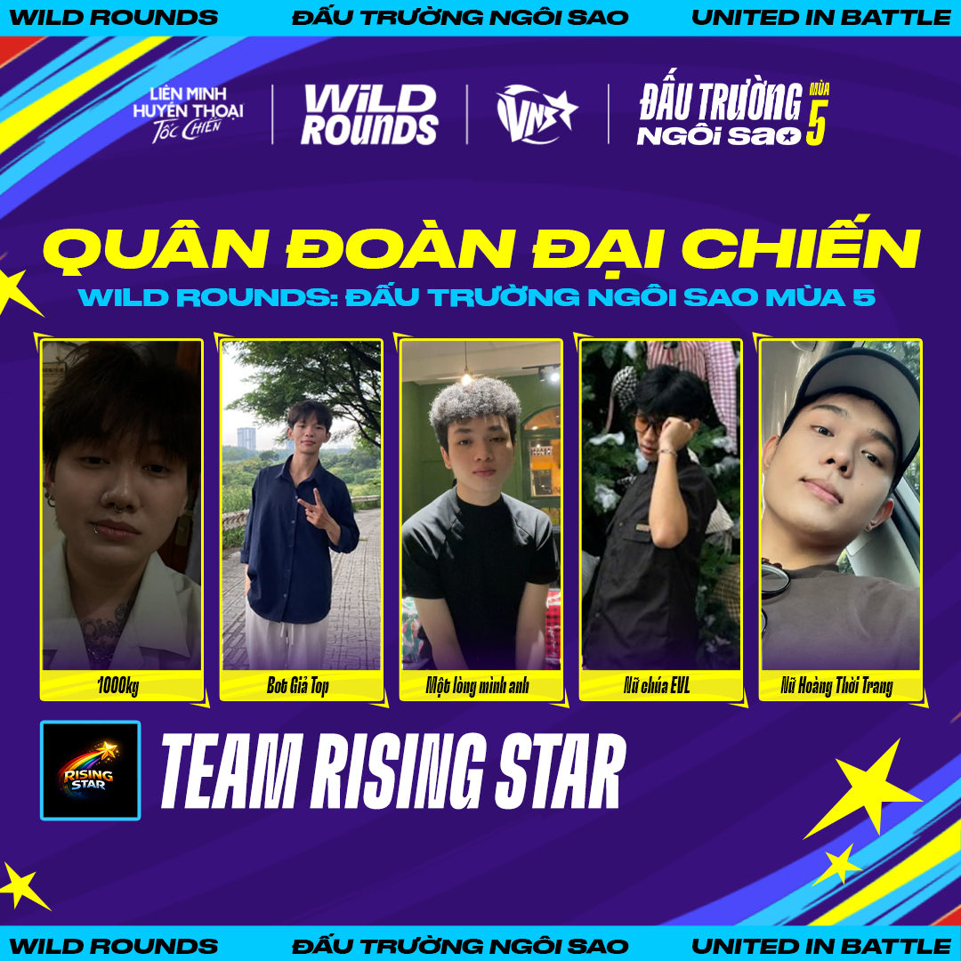 Năm mảnh ghép này không chỉ mang đến sự đa dạng trong phong cách thi đấu, mà còn thể hiện sự gắn kết chặt chẽ, tạo nên một tập thể Rising Star luôn sẵn sàng đồng hành và vượt qua mọi thử thách tại đấu trường Wild Rounds.