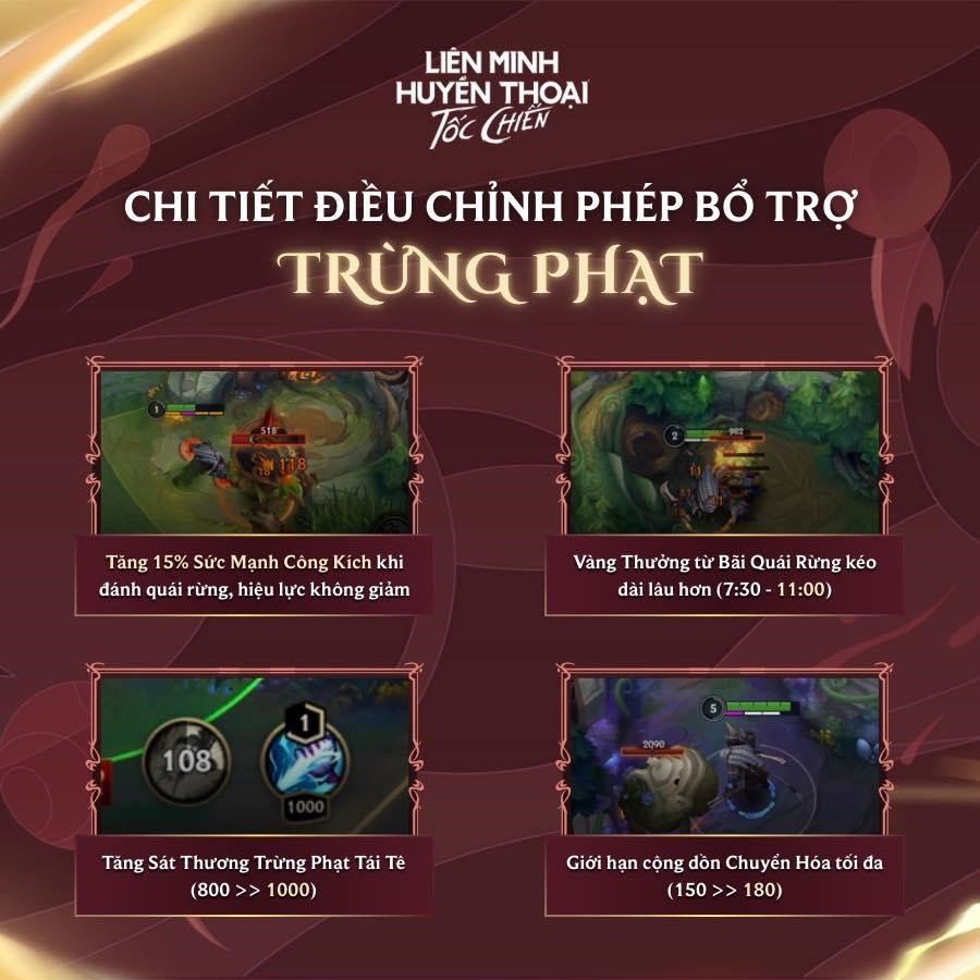 - Quyền kiểm soát mục tiêu tuyệt đối: sát thương của Trừng Phạt Tái Tê tăng từ 800 → 1000, đảm bảo lợi thế cạnh tranh tại các mục tiêu lớn như Rồng, Sứ Giả hay Baron.