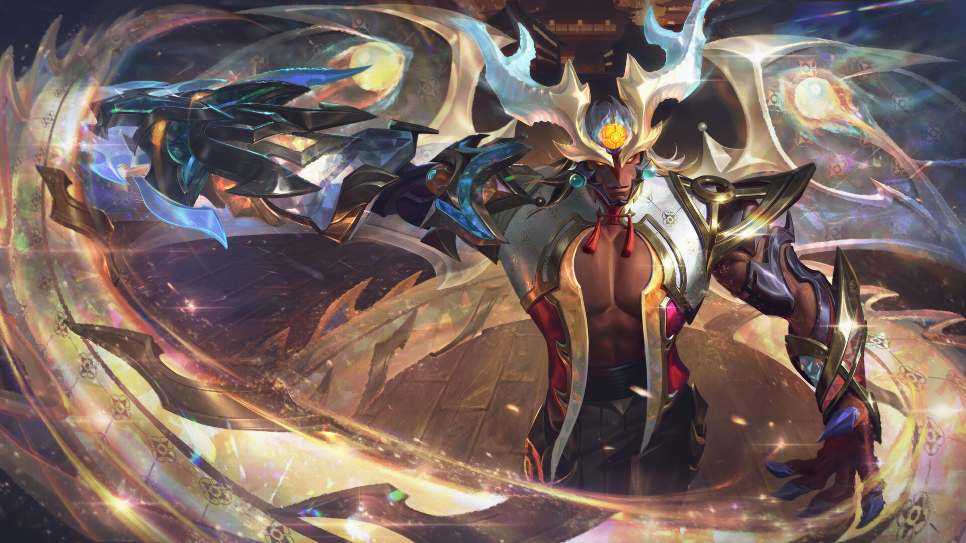 Mang đậm không khí Tết Nguyên Đán, trang phục này nổi bật với tông vàng kim chủ đạo. Ngoại hình quyền lực kết hợp hoạt ảnh chiến đấu mạnh mẽ giúp Aatrox tạo cảm giác đòn đánh chắc tay và đầy uy lực trong giao tranh.