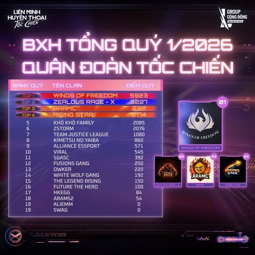 Các Leader Clan hãy nhanh chóng kiện toàn đội hình, chiêu mộ hào kiệt và sẵn sàng bước vào một mùa giải mới đầy thử thách. Liệu Wings of Freedom có thể tiếp tục bảo vệ vương miện, hay sẽ xuất hiện một “tân vương” đủ sức vươn lên và soán ngôi?