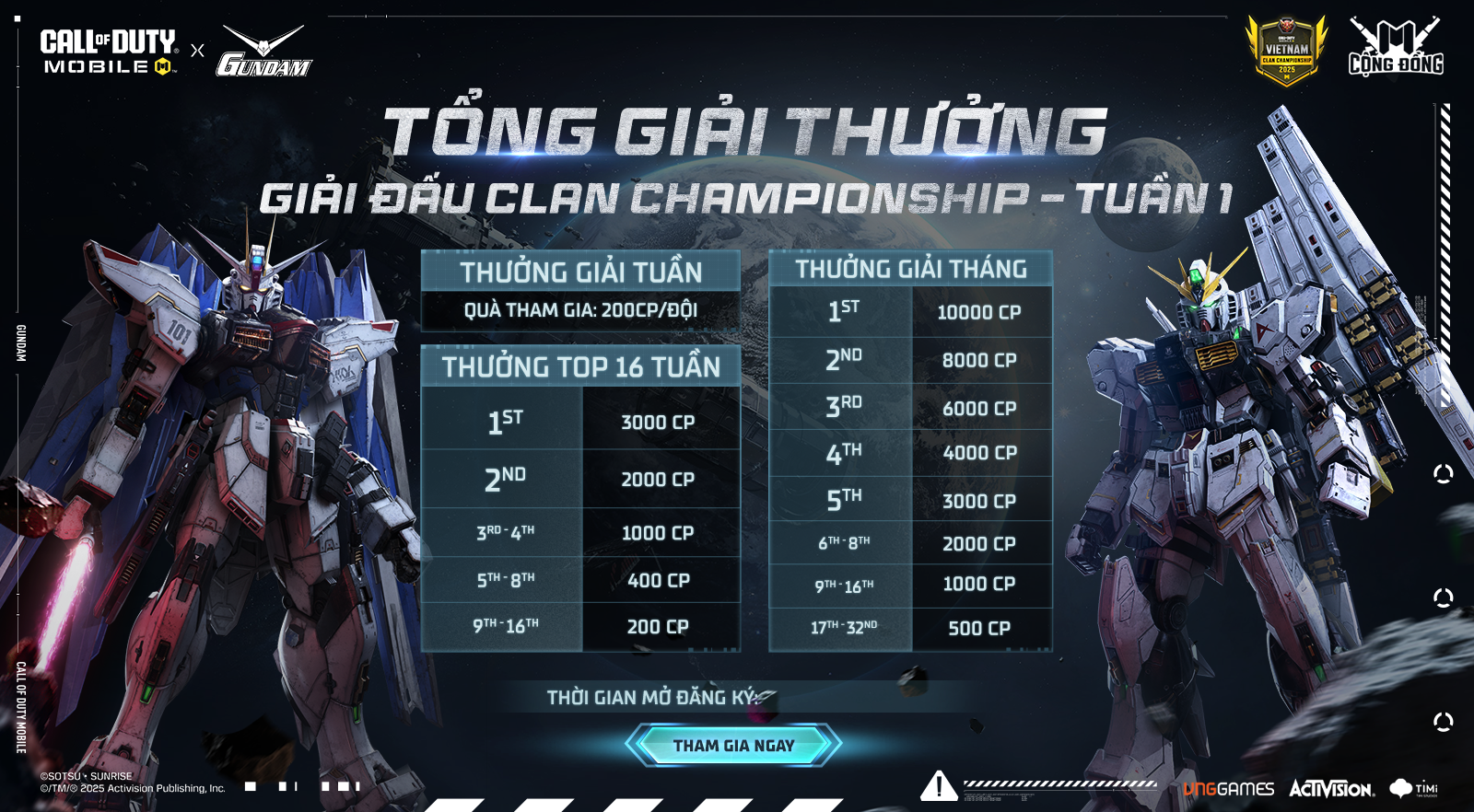 - Chỉ những Clan tham gia hệ thống giải đấu đầy đủ mới đủ điều kiện tranh giải thưởng tại Giải Tháng.