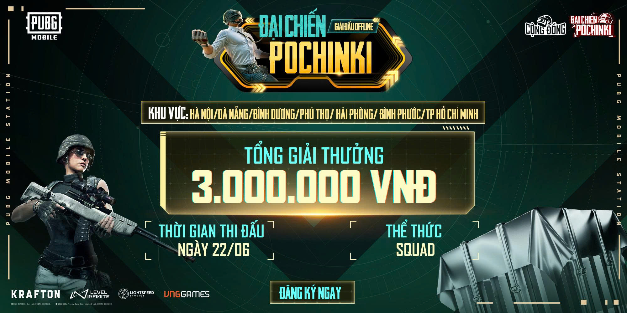“Đại Chiến Pochinki” tiếp tục mang đến sân chơi offline sôi động cho cộng đồng PUBG Mobile Việt Nam. Đặc biệt, tuần này giải đấu sẽ chính thức đổ bộ tại các tỉnh: Bình Phước, Hải Phòng và Phú Thọ.