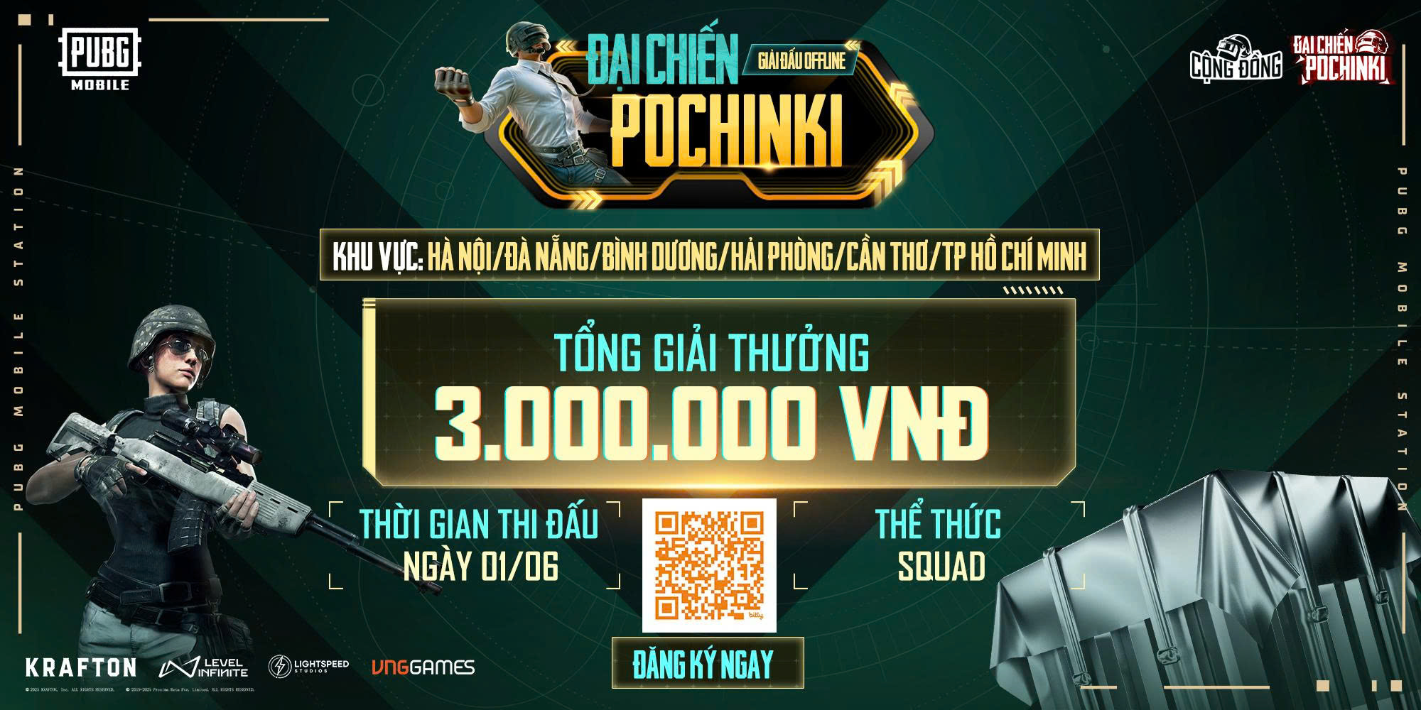 Đại chiến Pochinki tiếp tục diễn ra tạo sân chơi Offline cho Cộng đồng PUBG Mobile Việt Nam. Sau các giải đấu hấp dẫn của tháng 5, Pochinki tiếp tục được mở rộng đến với các tỉnh thành trên khắp cả nước.