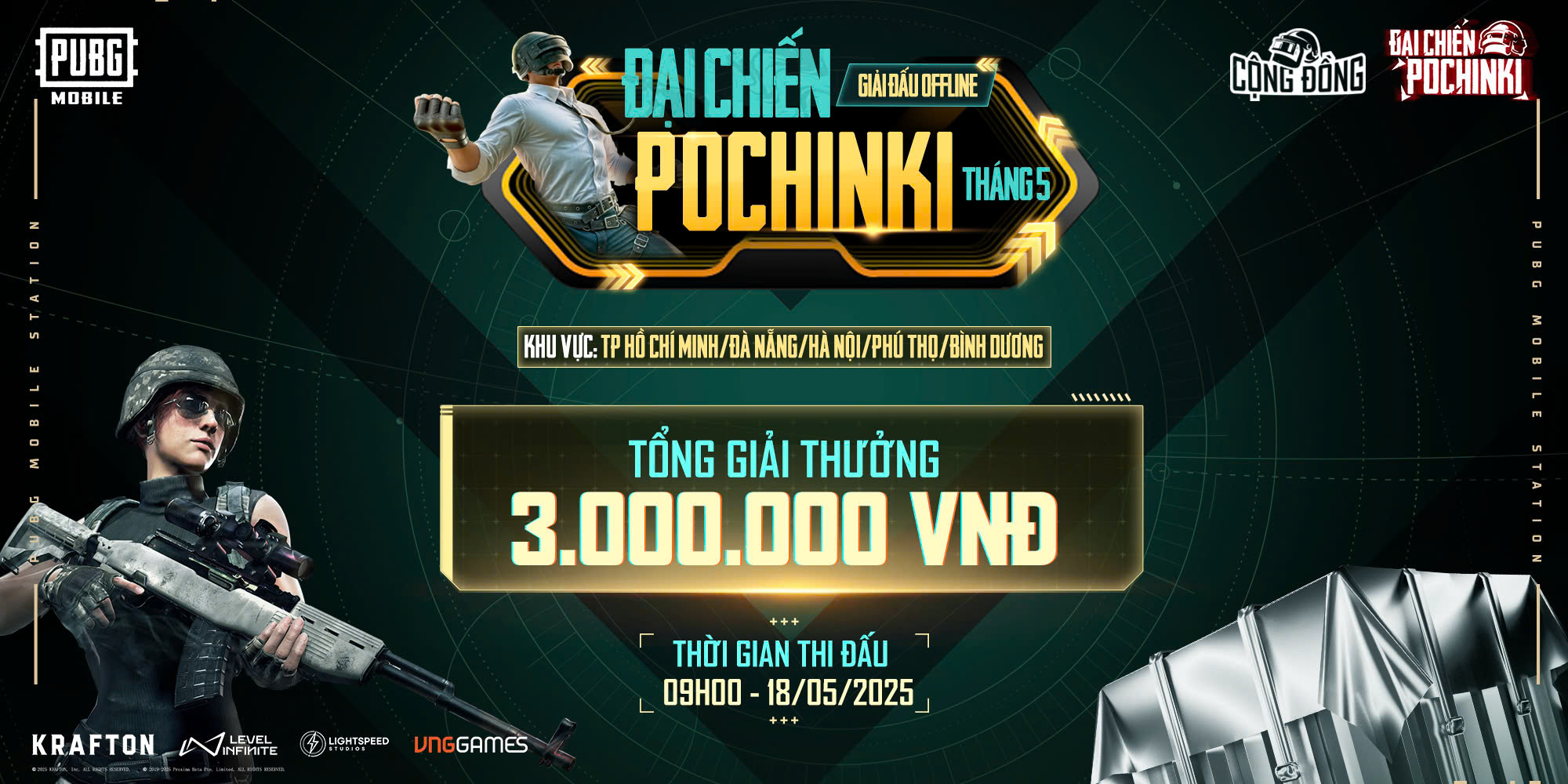 Đại chiến Pochinki tiếp tục diễn ra tạo sân chơi Offline cho Cộng đồng PUBG Mobile Việt Nam. Sau các giải đấu hấp dẫn trong tuần đầu tiên của tháng 5, Pochinki tiếp tục được mở rộng đến với các tỉnh thành trên khắp cả nước. Nhanh tay đăng ký để đến với giải đấu Offline của Cộng đồng PUBG Mobile Việt Nam trong tháng 05 thôi các Đồng Bo ơi.