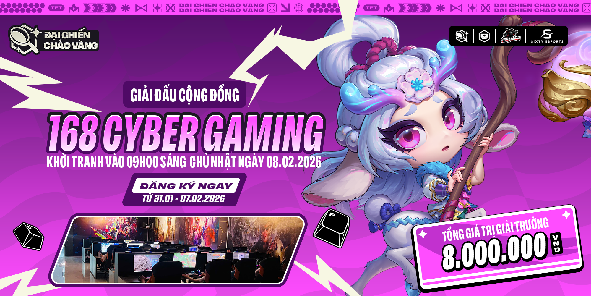 168 Cyber Gaming chính thức công bố giải đấu Đại Chiến Chảo Vàng – sân chơi quy tụ những “kỳ thủ” Đấu Trường Chân Lý hàng đầu khu vực. Không chỉ đơn thuần là giải đấu giao lưu, đây là cuộc cạnh tranh thực thụ nhằm tìm ra người chơi sở hữu kỹ năng vượt trội nhất.