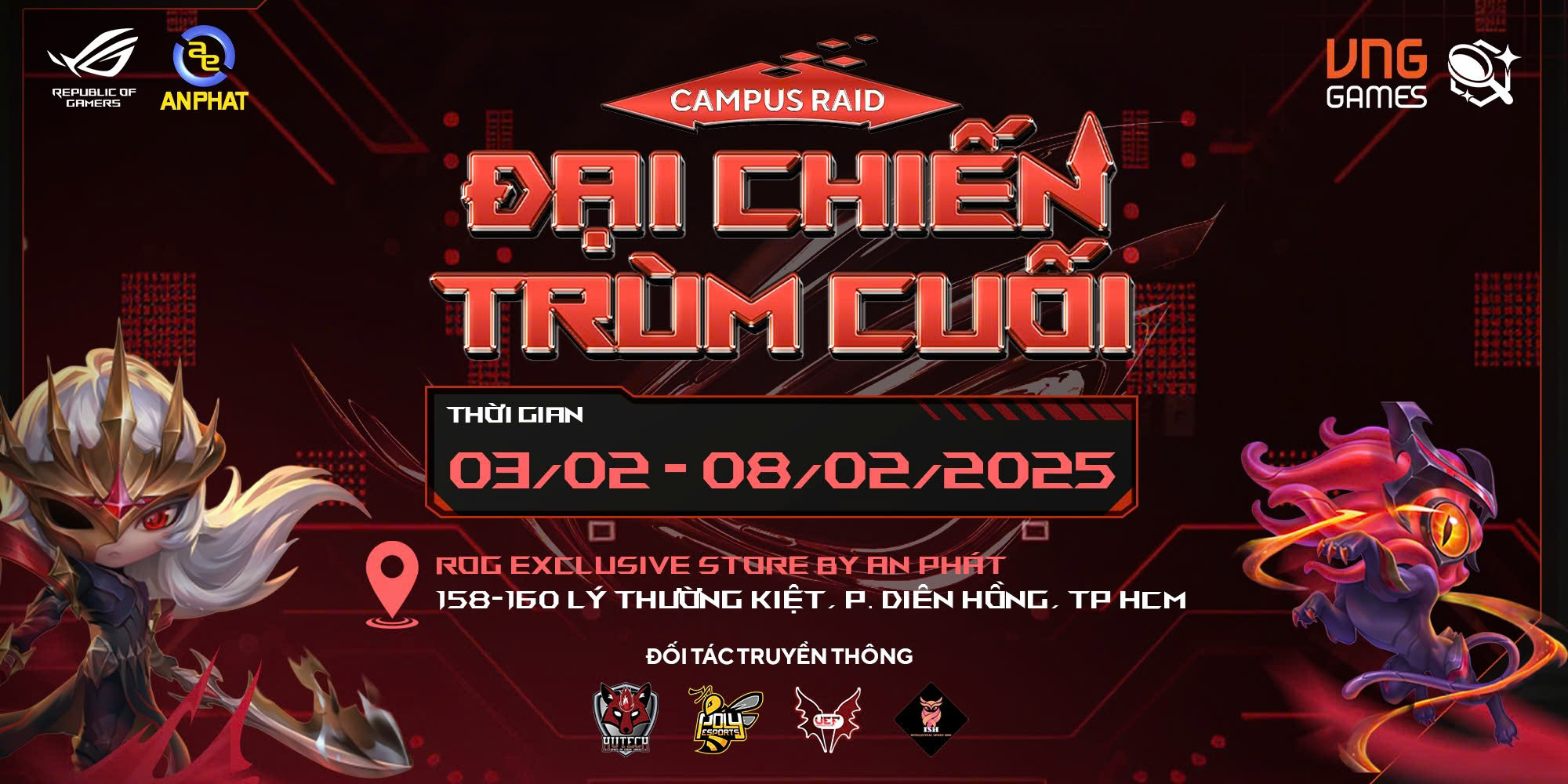 Bóng tối bao phủ, TRÙM CUỐI đã trỗi dậy! Với tham vọng càn quét mọi bàn cờ tại CAMPUS RAID, gã khổng lồ đang thách thức những bộ óc chiến thuật đỉnh cao nhất. Đã đến lúc những "kẻ thách thức" bước ra ánh sáng, xoay bài chuyển ấn và lật đổ đế chế để chạm tay vào vinh quang.